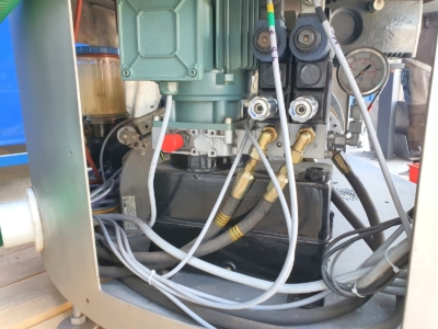 Maszyna wyposażona w czujnik temperatury, wyrzutnik produktu i pompę próżniową Bush.