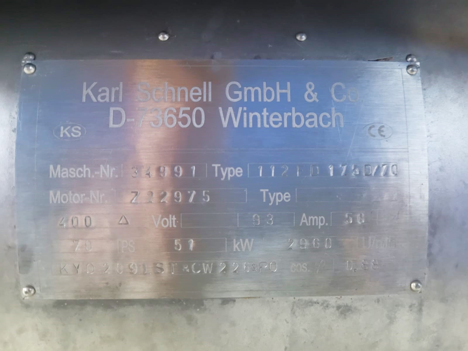 Kuter masarski przelotowy Karl Schnell 112 FD175 D/70 jest stosowany we wszystkich gałęziach przemysłu spożywczego, w których produkty wymagają homogenicznej emulsji. Jest on w całości wykonany ze stali nierdzewnej. Ze względu na niską wysokość zbiornika, emulgator może być ładowany bezpośrednio z kutra lub miksera. Urządzenie zamontowane na kółkach więc może być łatwo przemieszczane z jednego miejsca do drugiego.