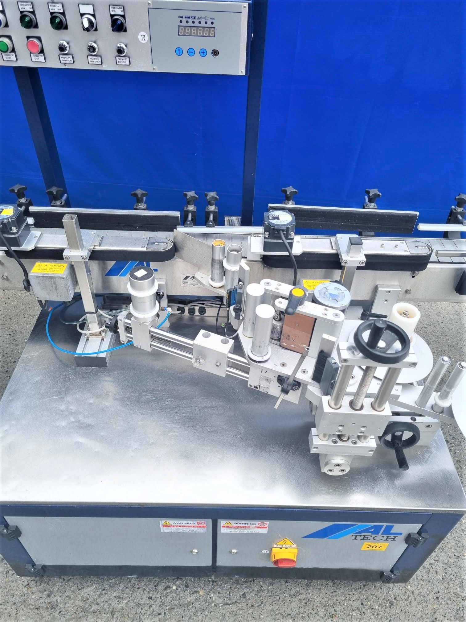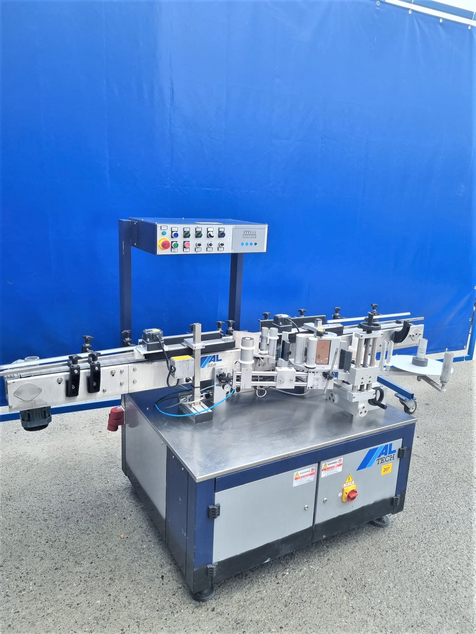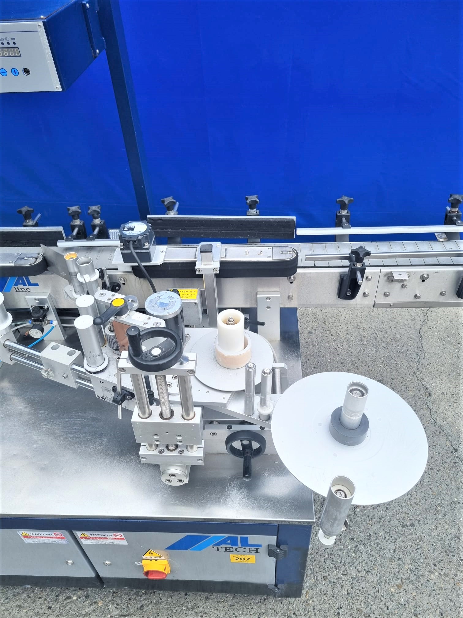 Używana etykieciarka firmy ALline model C idealnie nadaje się do naklejania etykiet na opakowania cylindryczne. Sprawdzi się w naklejaniu etykiet na artykuły spożywcze, chemiczne, kosmetyczne czy farmaceutyczne w plastikowych, szklanych lub metalowych opakowaniach.