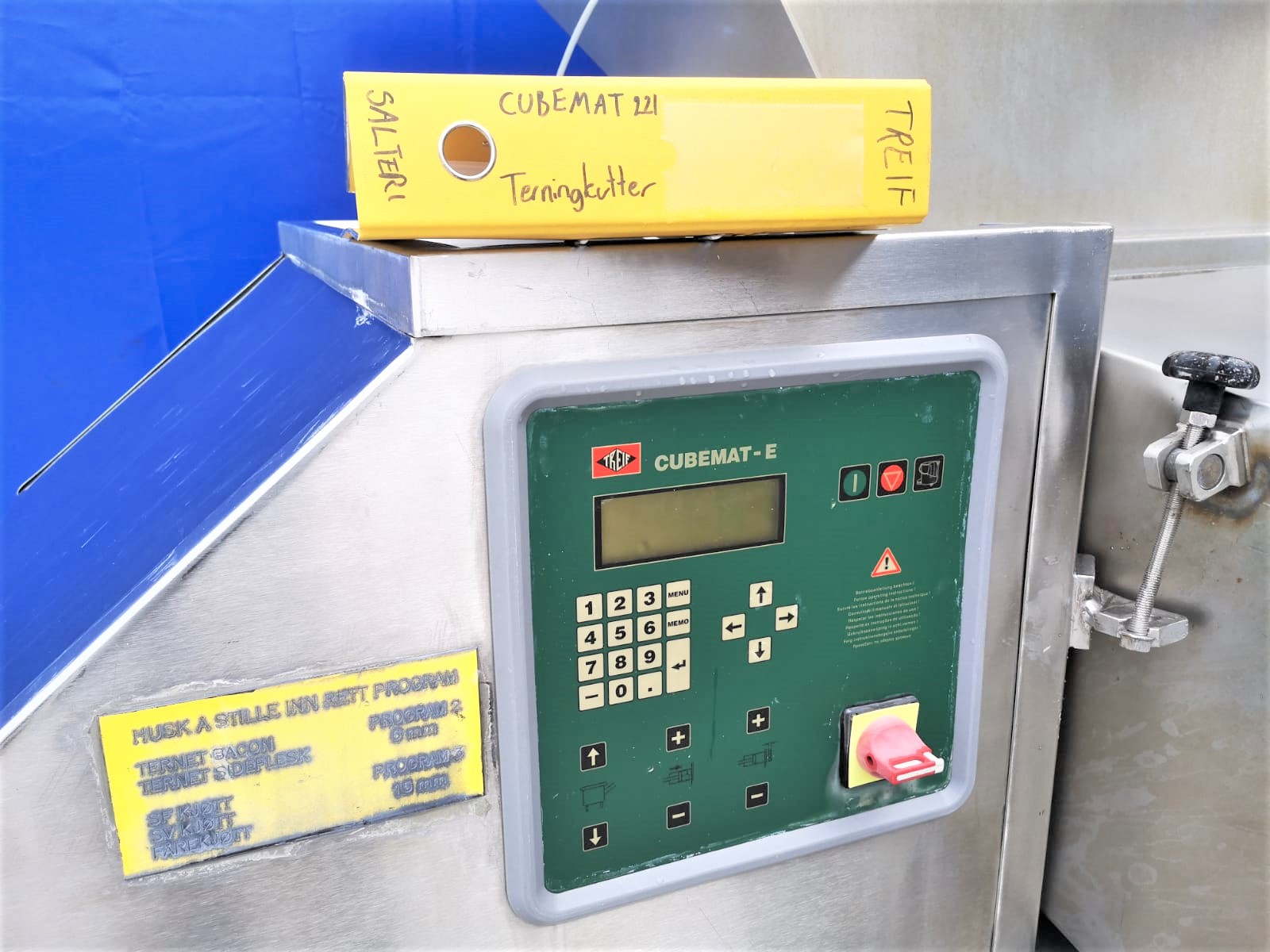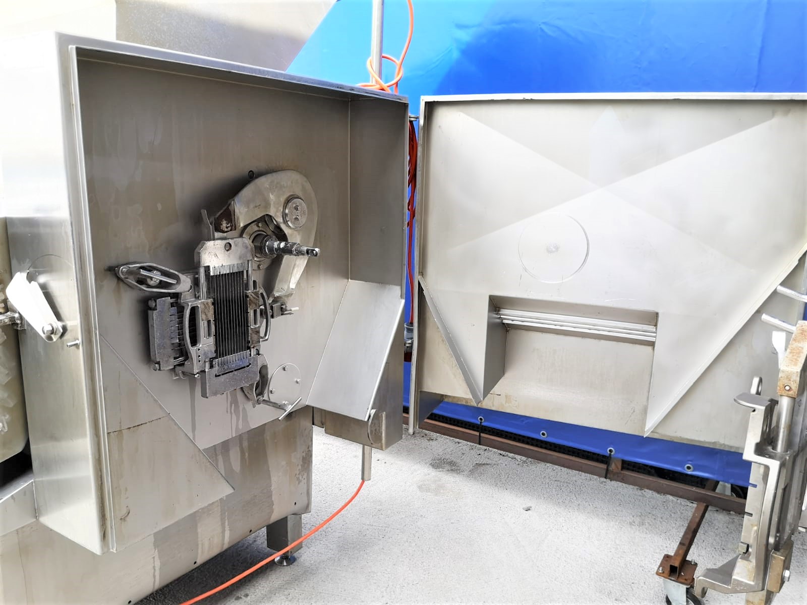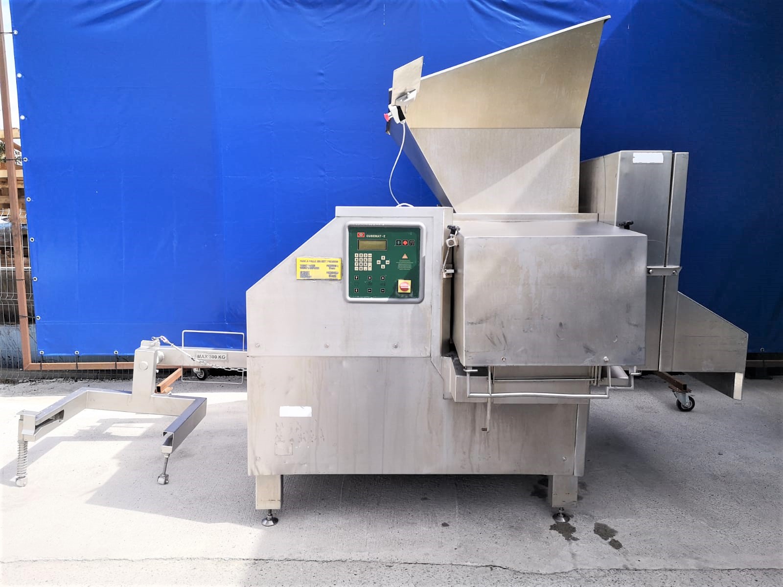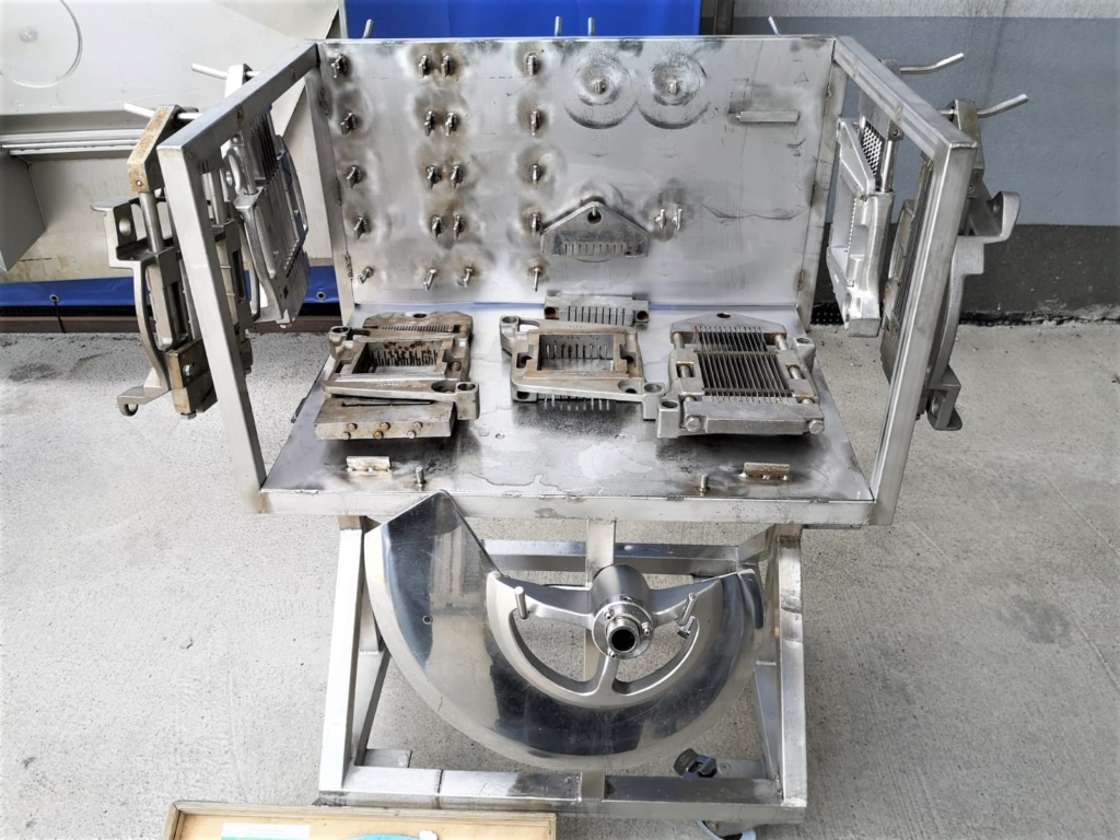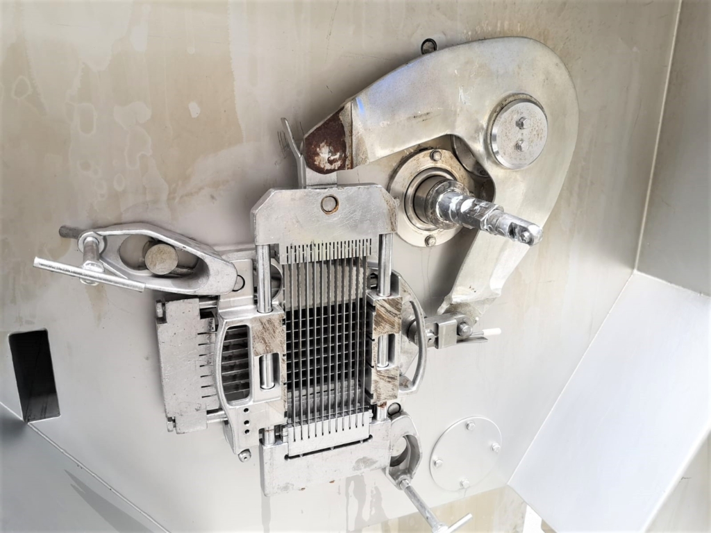 Używana kostkownica Treif Cubemat-E 221 to urządzenie o wysokiej wydajności. Doskonale sprawdzi się w średnich i dużych zakładach produkcyjnych. Posiada załadunek do 200l cymbrów. W zestawie z kilkoma kompletami siatek tnących i noży. Całość wykonana ze stali kwasoodpornej co gwarantuje najwyższą higiene pracy oraz łatwość utrzymania.