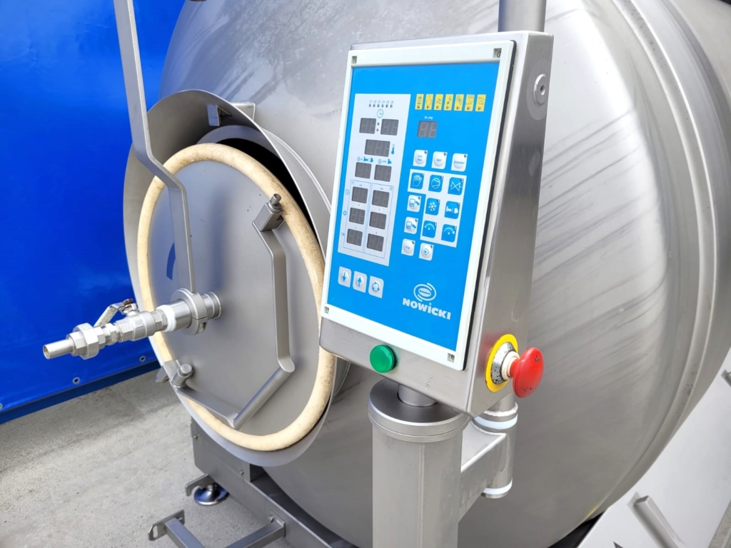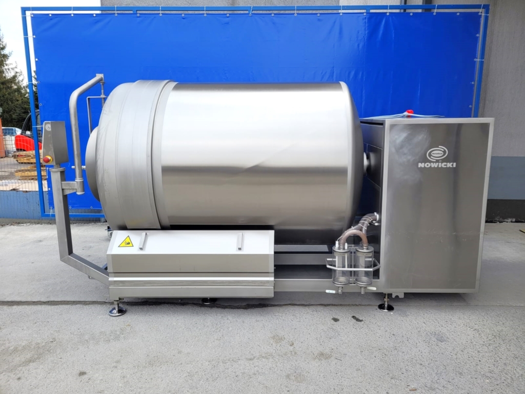Masownica Nowicki MA-3600 PS zapewnia najwyższą jakość masowanych produktów mięsnych. Sterowana jest za pomocą mikroprocesora, który utrzymuje parametry masowania na zaprogramowanym poziomie. System sterowania i programowania urządzenia jest bardzo prosty i intuicyjny. Urządzenie ma możliwość regulacji obrotu i wydajność produkcyjną 1800 kg.