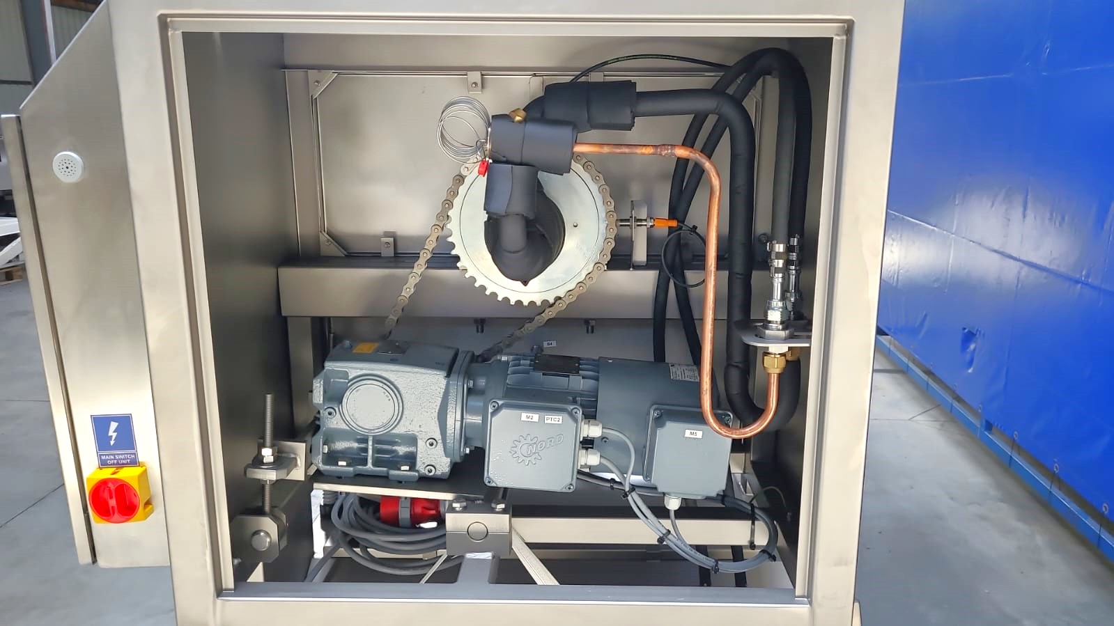 Maszyna posiada izolowany płaszcz chłodzący na obwodzie bębna (chłodzony glikolem)