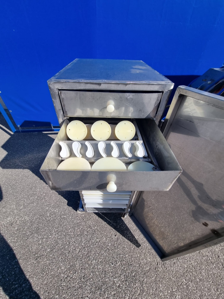 1. Formierka hamburgerów Alco AFM 400 – PC, wyposażona w różne formy. Hydrauliczne podawanie ślimakowe.