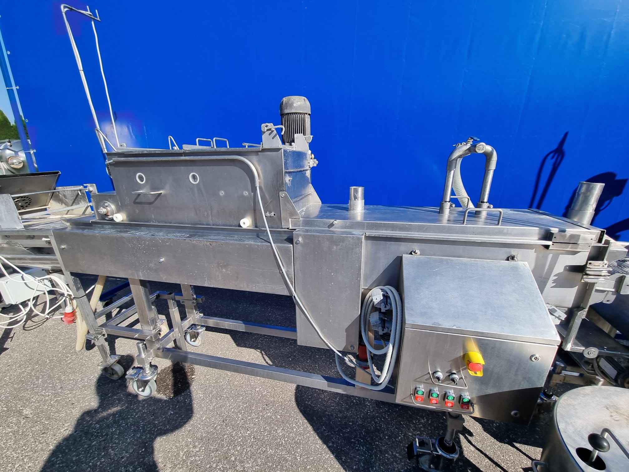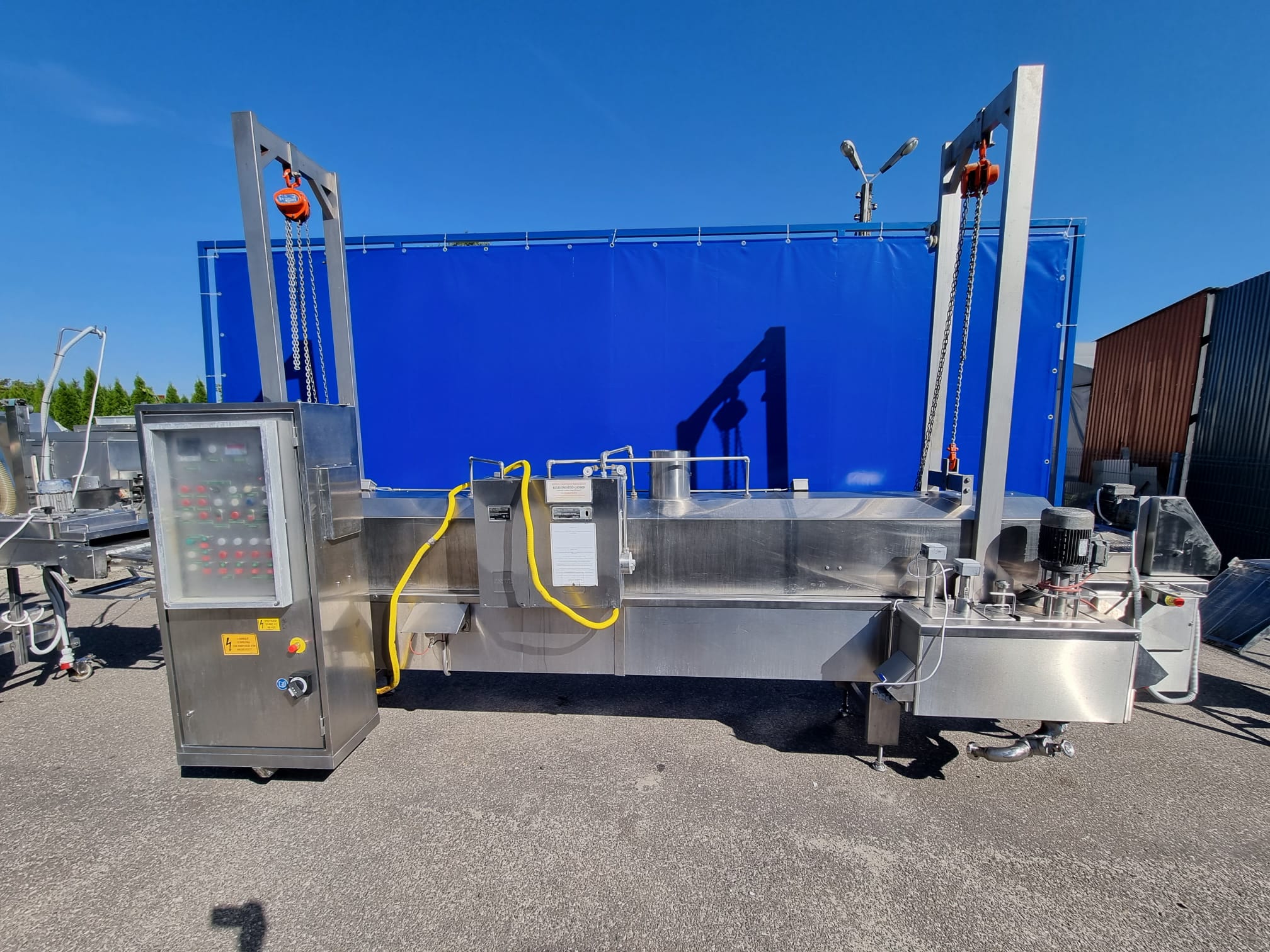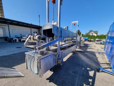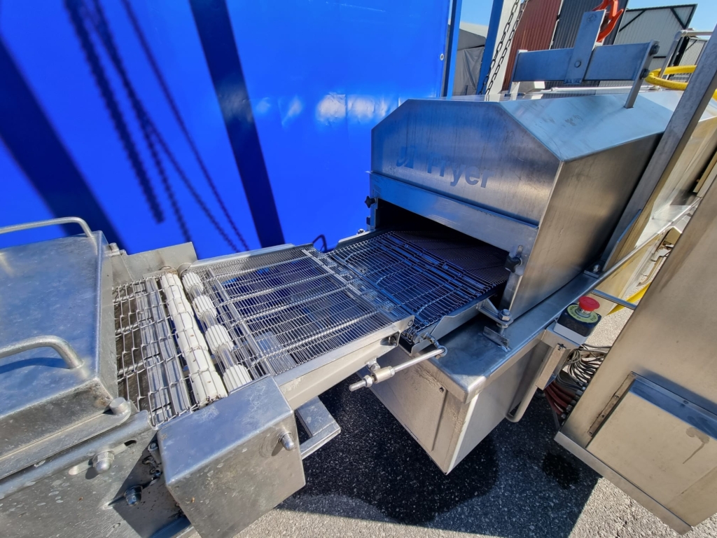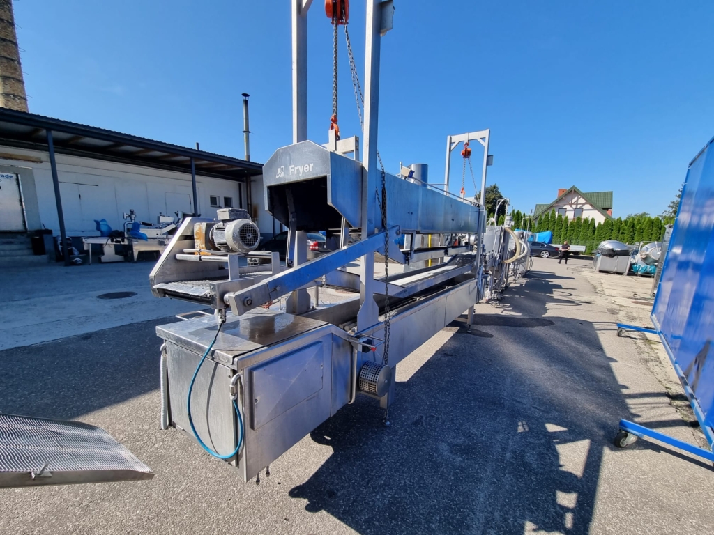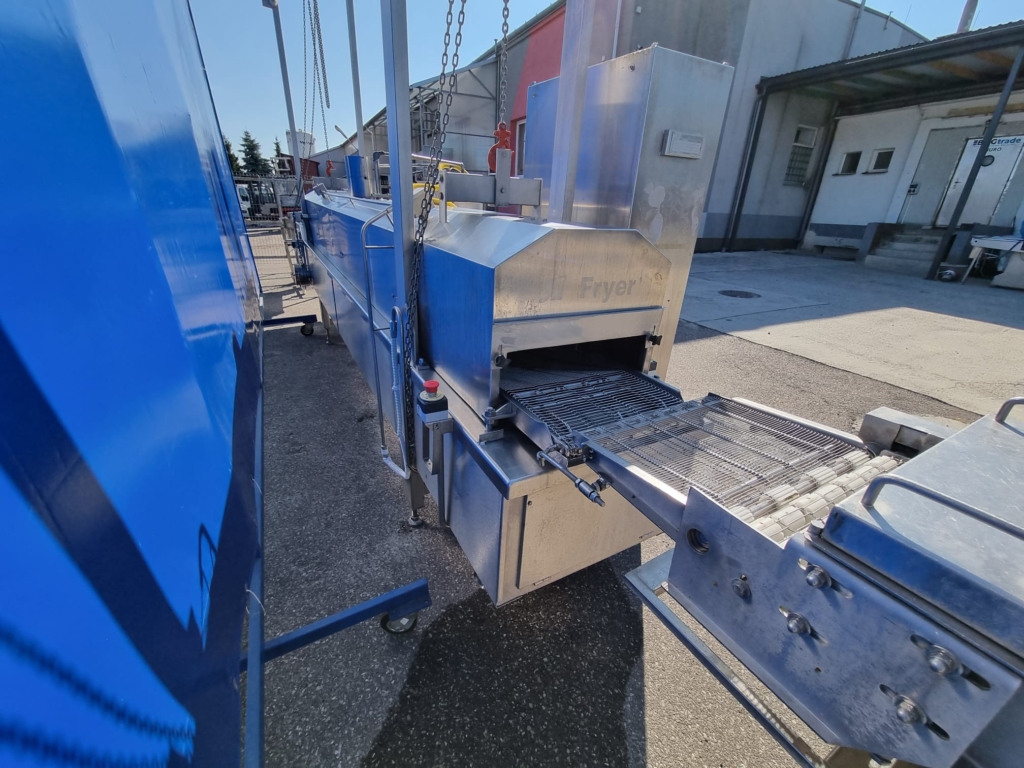 6. Smażalnik przelotowy CFS: Typ BR3000/400. – Nadaje się do wszystkich produktów spożywczych, które wymagają smażenia, na przykład: nuggetsy z kurczaka, paluszki rybne, hamburgery itp. W całości ze stali nierdzewnej.