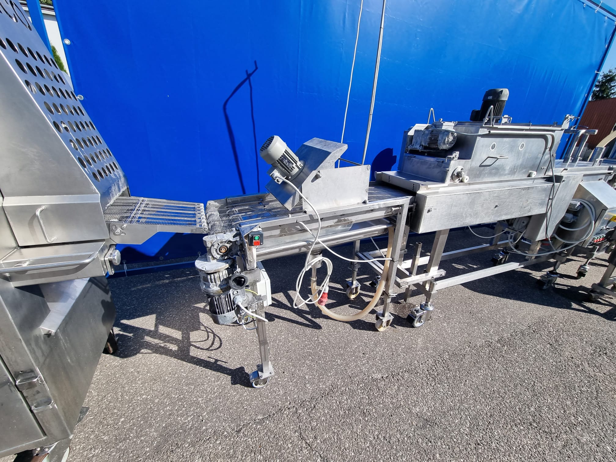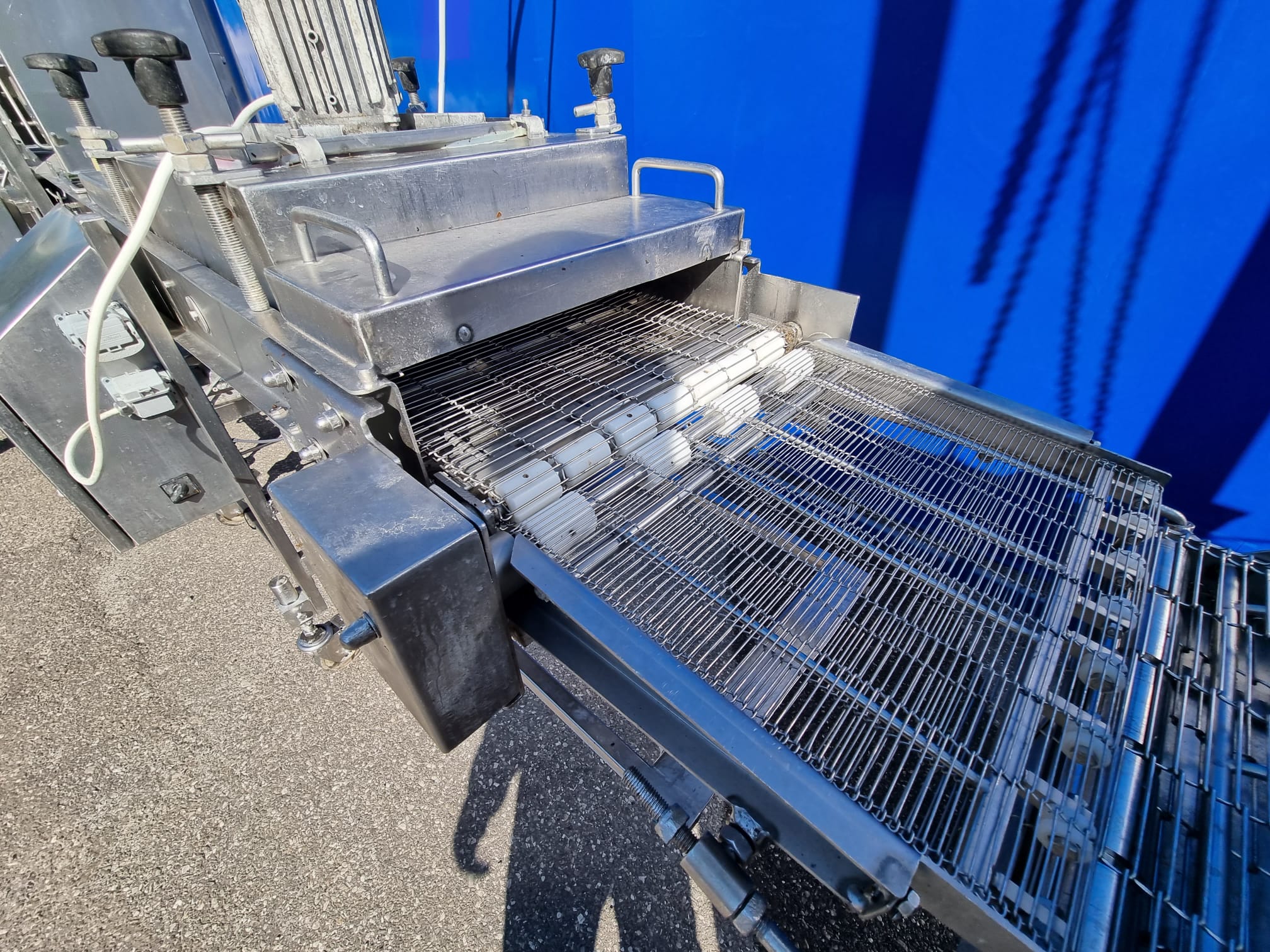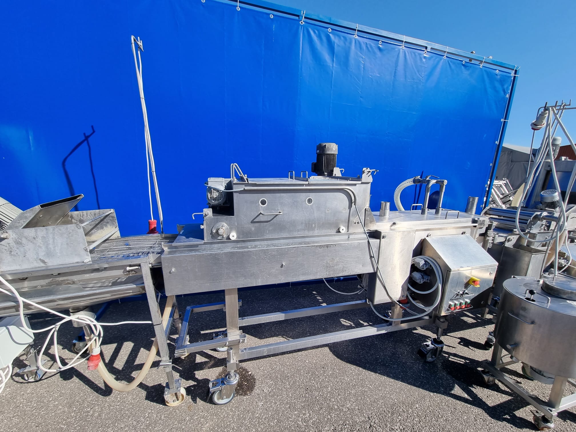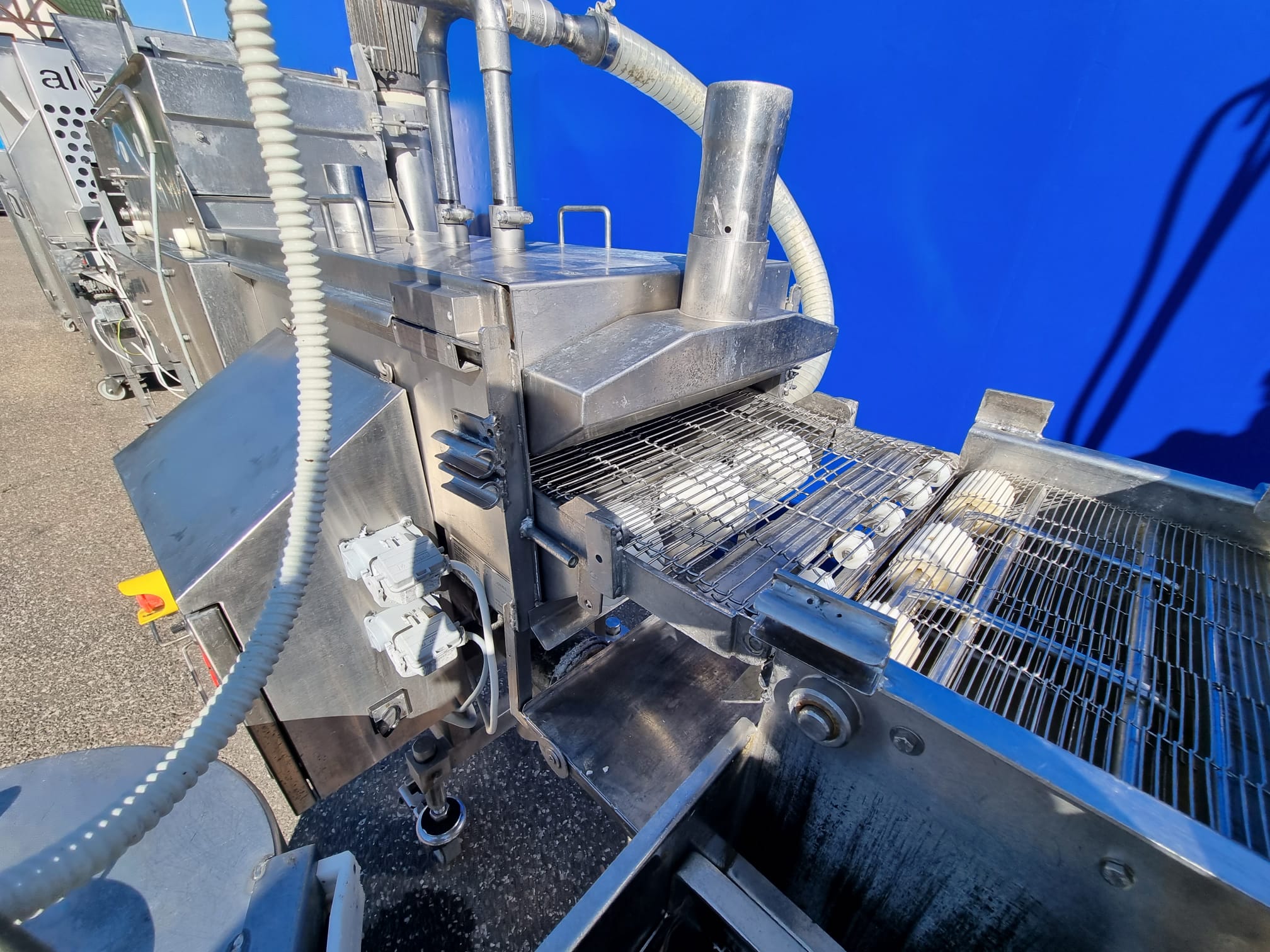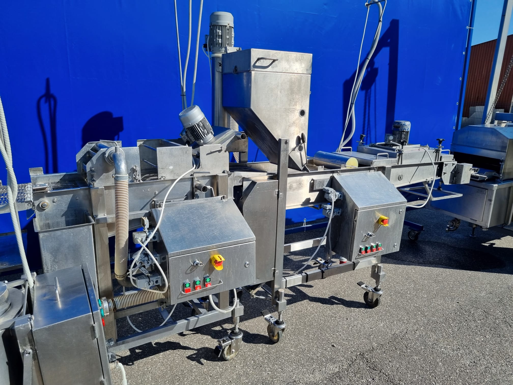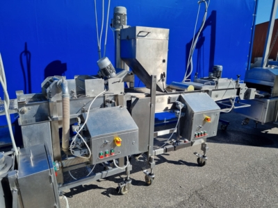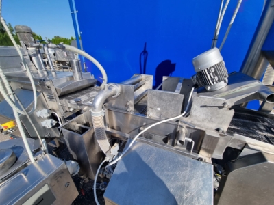 5. Panierownica Sucha Koppens, typ: PR 400. Maszyna służąca do powlekania poduktów bułką tartą. System recyrkulacji bułki tartej oraz nóż powietrzny do usuwania nadmiaru bułki z produktu.