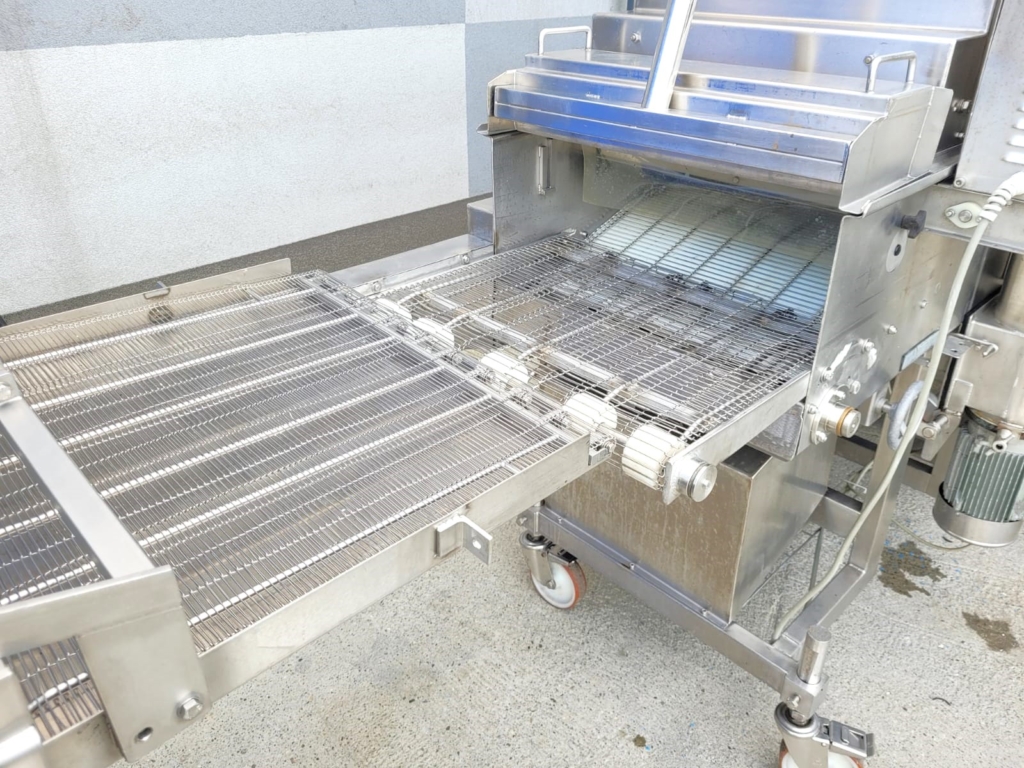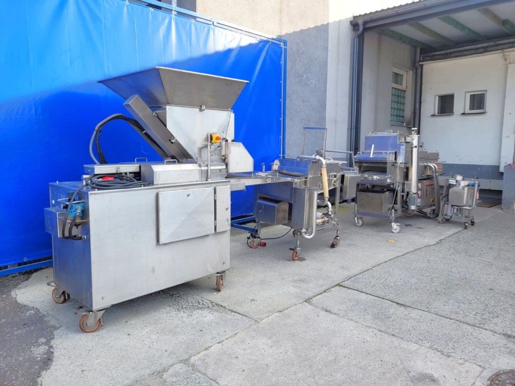 Używana linia do formowania i panierowania firmy Koppens jest doskonałym rozwiązaniem dla każdego zakładu produkcyjnego specjalizującego się w produkcji burgerów mięsnych. System formowania i porcjowania został zaprojektowany tak, aby można było formować produkty bez niszczenia ich naturalnej struktury. Formierki posiadają autonomiczną hydrauliczną jednostkę napędową, która jest sterowana powietrzem.