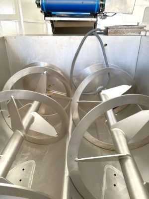 - Mieszalnik Seydelmann P 3000 z podwójnymi łopatkami (spiralnymi) i zbiornikiem o pojemności 3800 l poprawia jakość produktu poprzez mieszanie i homogenizację mięsa z innymi składnikami lub przyprawami.