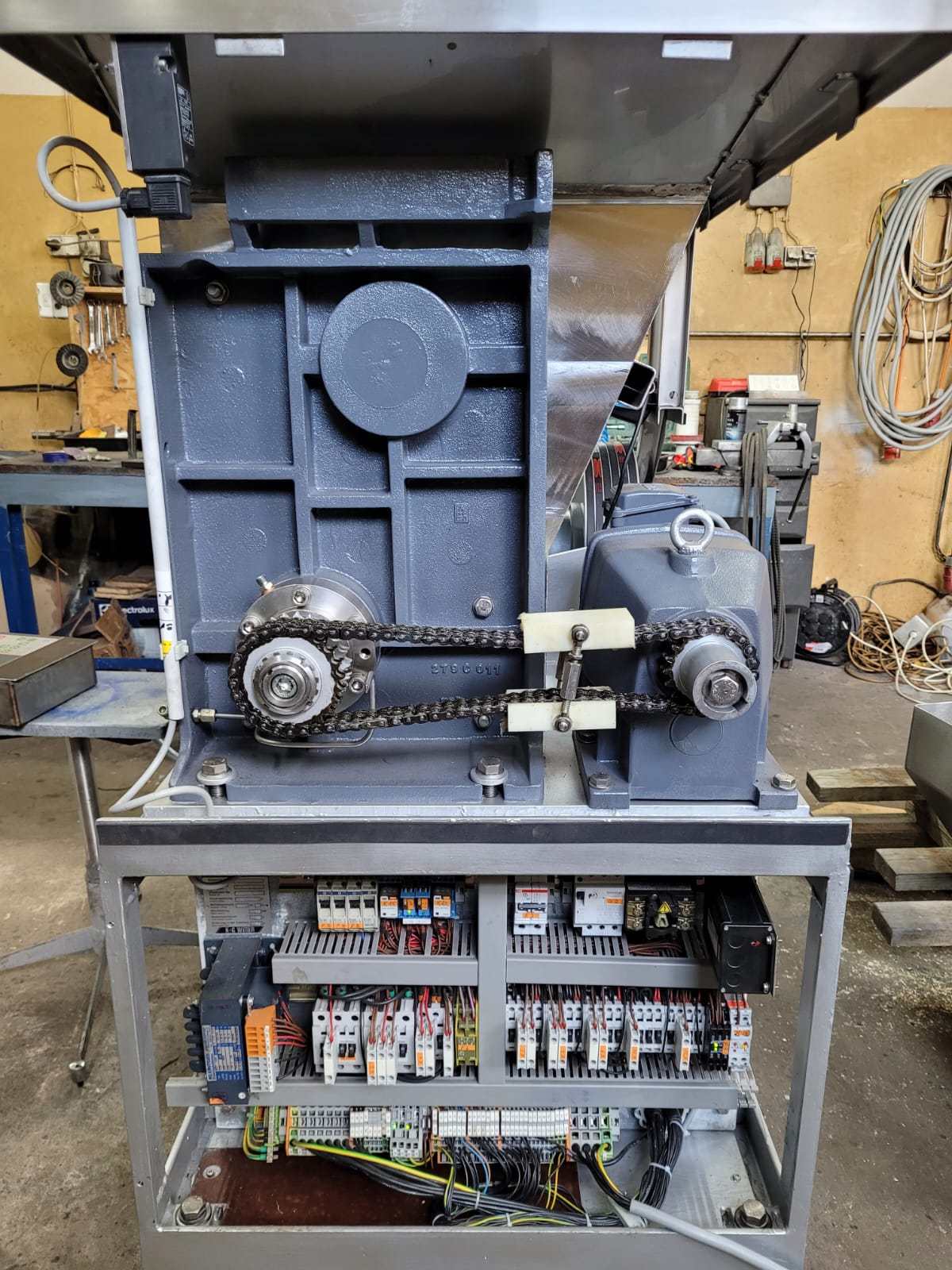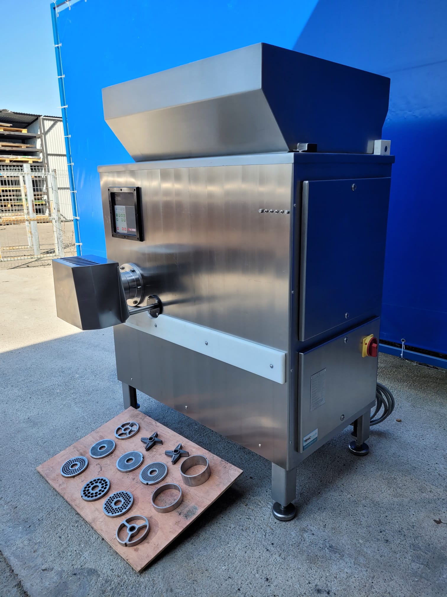 Używany wilk kątowy K+G Wetter WW 130mm to niezawodne i trwałe urządzenie przeznaczone do rozdrobnienia, zmielenia produktu zarówno świeżego jak i tego lekko mrożonego. Doskonale sprawdzi się w małych i średnich zakładach produkcyjnych. Całość wykonana ze stali nierdzewnej co gwarantuje najwyższą higienę pracy oraz łatwość utrzymania. Posiada dwie prędkości 11/19 kW