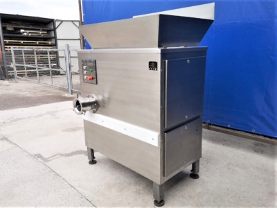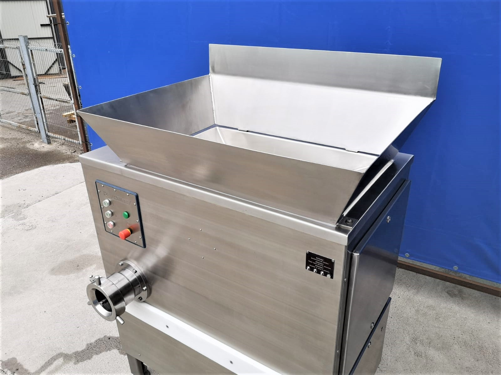 Używany wilk kątowy K+G Wetter WW 130mm to niezawodne i trwałe urządzenie przeznaczone do rozdrobnienia, zmielenia produktu zarówno świeżego jak i tego lekko mrożonego. Doskonale sprawdzi się w małych i średnich zakładach produkcyjnych. Całość wykonana ze stali nierdzewnej co gwarantuje najwyższą higienę pracy oraz łatwość utrzymania. Posiada dwie prędkości 11/18 kW
