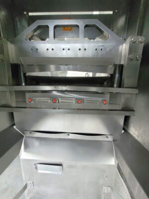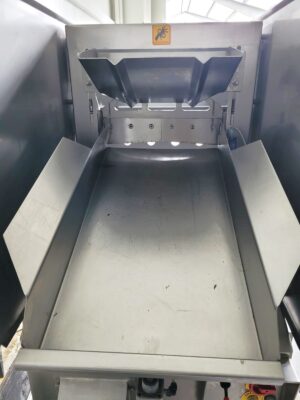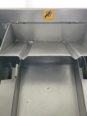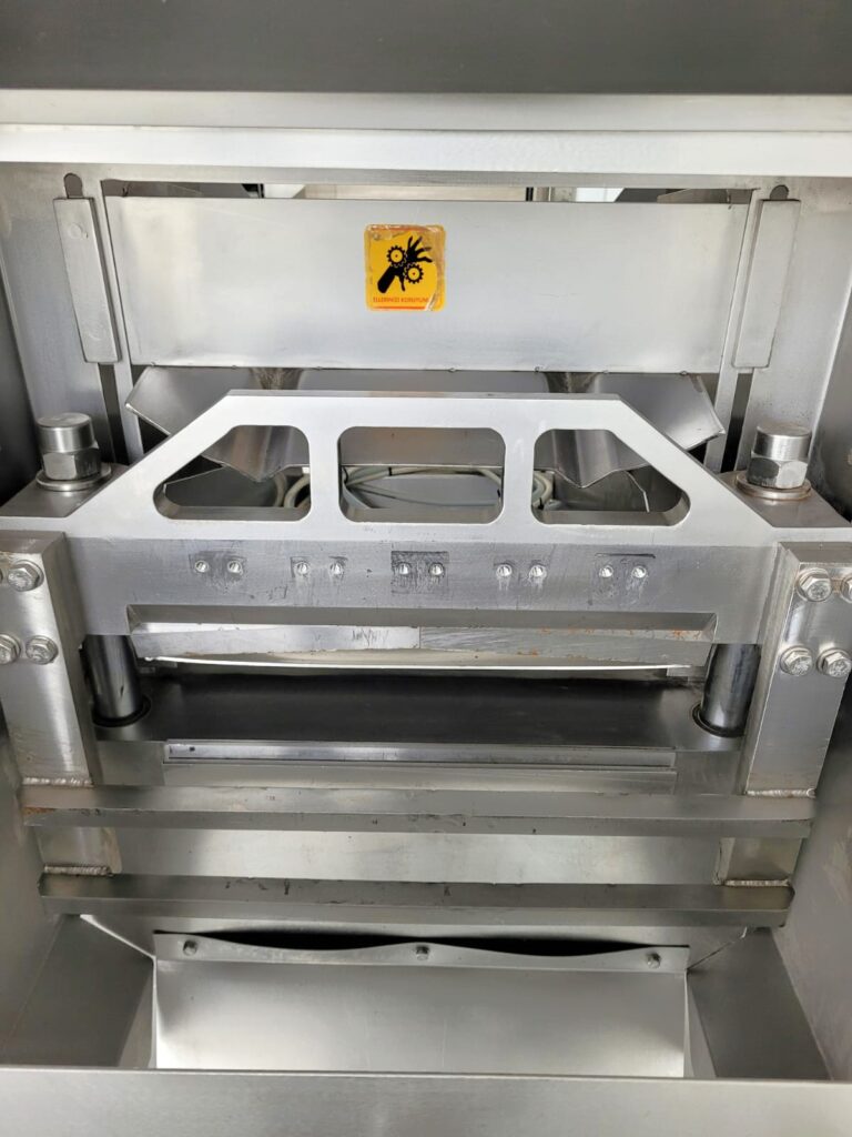 Maszyna jest w całości wykonana z wysokiej jakości stali nierdzewnej AISI 304, co zapewnia trwałość, odporność na korozję i łatwość czyszczenia – kluczową cechę w przemyśle spożywczym.