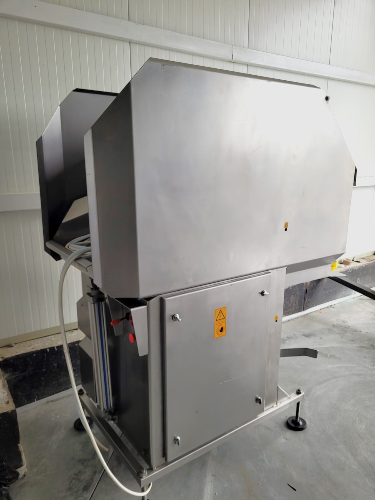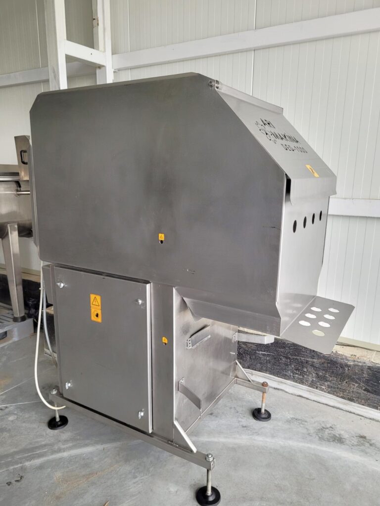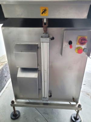 Gilotyna do mrożonego mięsa Ari Makina DED-1000 służy do rozdrabniania dużych bloków mięsa o wymiarach 250 x 250 x 200 mm, które są wstępnie zamrażane w temp. maks. – 25°C, na mniejsze kawałki o wymiarach 50 x 50 x 30 mm. Taka redukcja rozmiaru jest niezbędna do dalszego przetwarzania i przygotowania produktu.