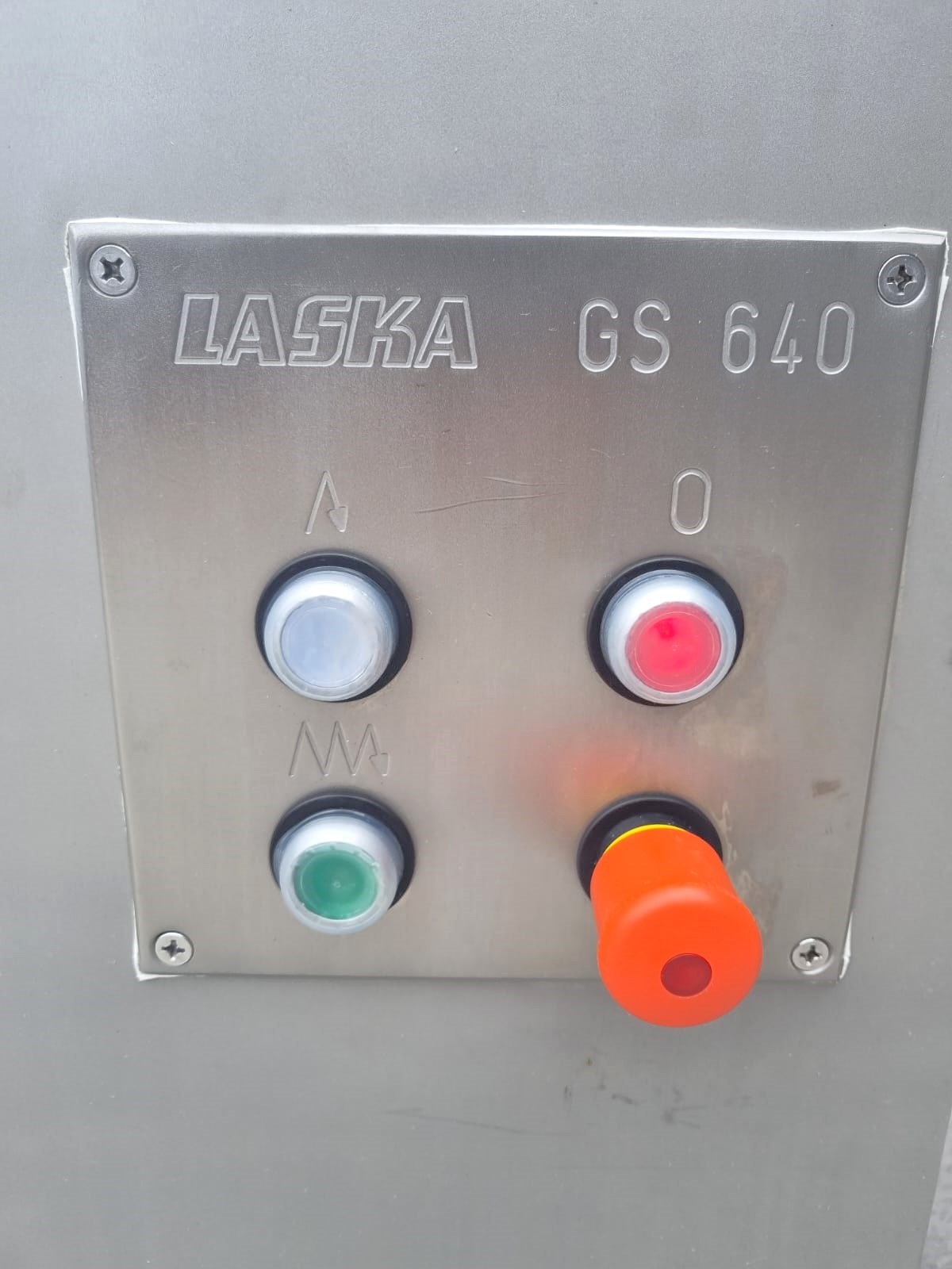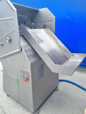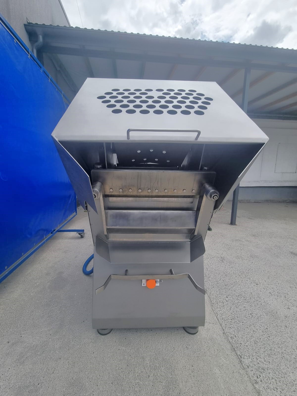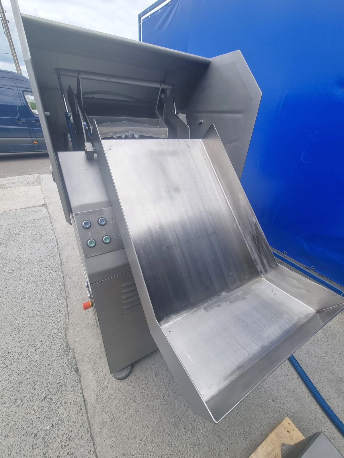 Używana gilotyna do bloków mięsa mrożonego Laska GS 640 służy do rozdrabniania zamrożonych bloków mięsa lub innych produktów spożywczych. Prosta i solidna konstrukcja wykonana w całości ze stali nierdzewnej oraz wydajny układ hydrauliczny zapewnia łatwą konserwację, czyszczenie i długą żywotność maszyny.