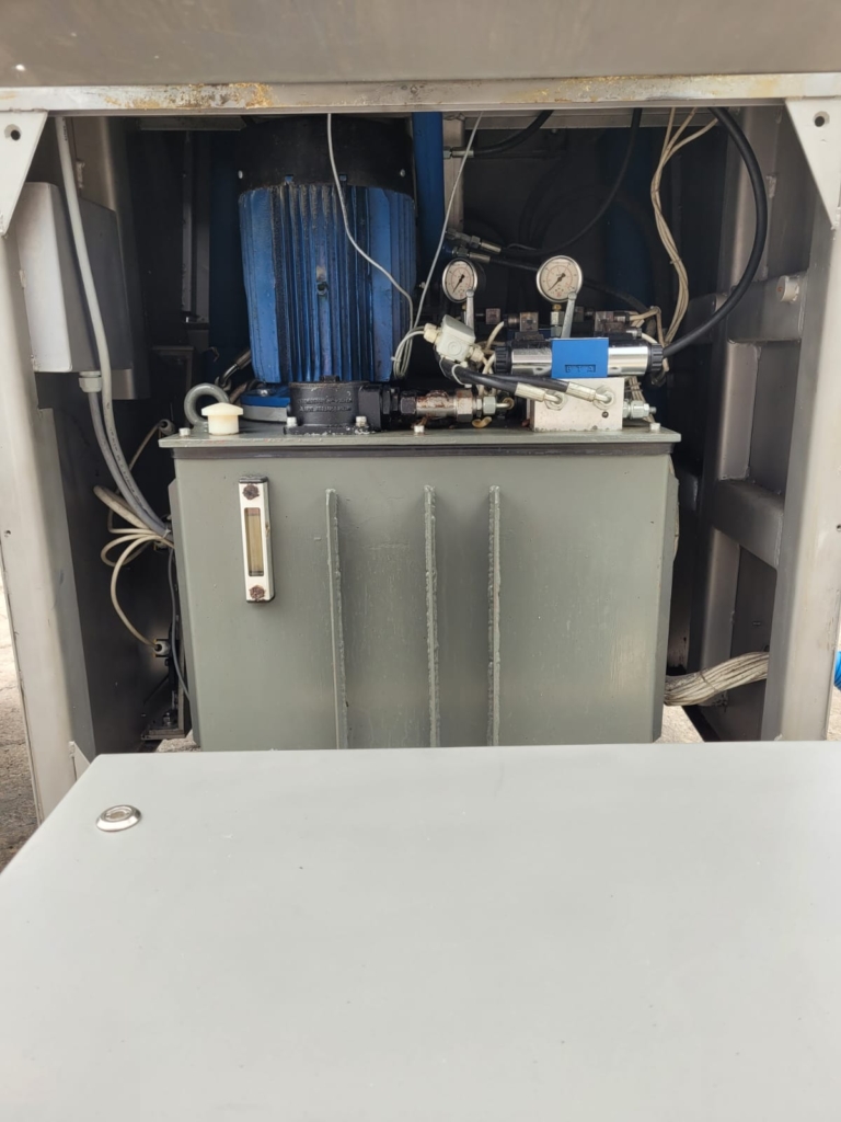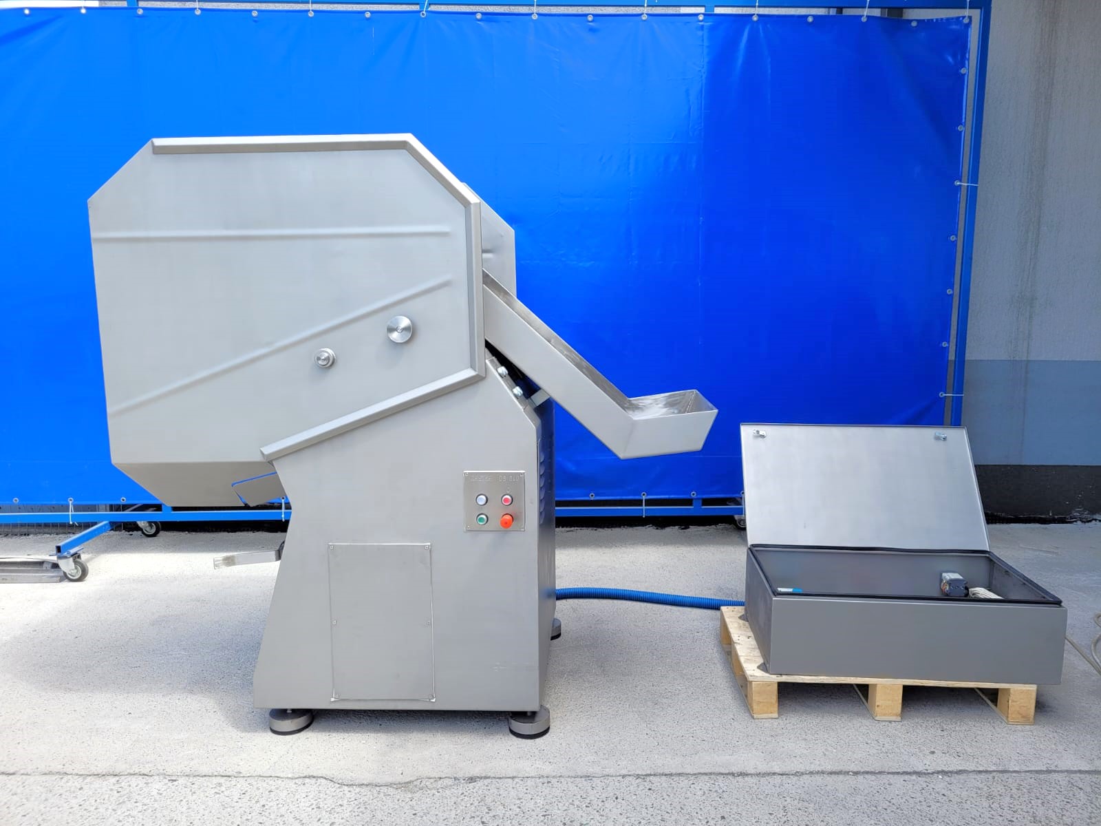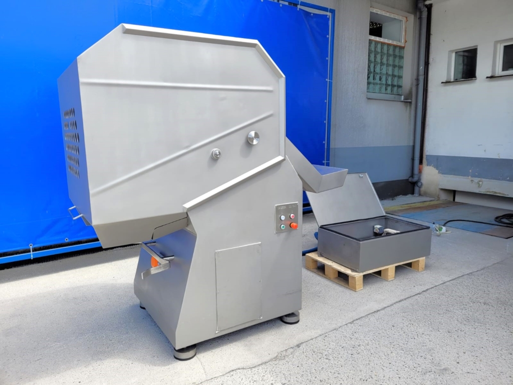 Używana gilotyna do bloków mięsa mrożonego Laska GS 640 służy do rozdrabniania zamrożonych bloków mięsa lub innych produktów spożywczych. Prosta i solidna konstrukcja wykonana w całości ze stali nierdzewnej oraz wydajny układ hydrauliczny zapewnia łatwą konserwację, czyszczenie i długą żywotność maszyny.