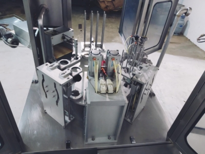 Obrotowa maszyna do napełniania i zamykania kubków firmy ILPRA.
