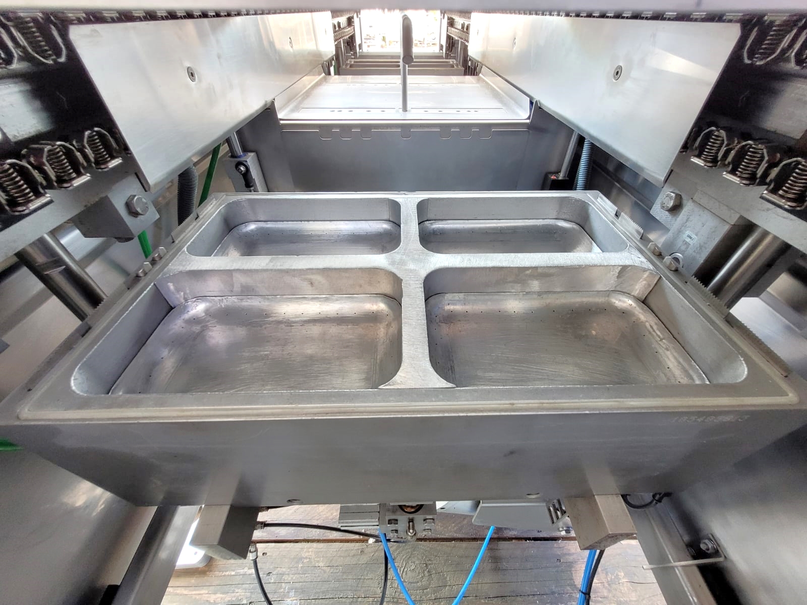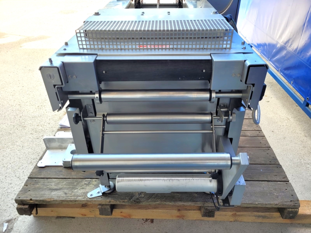 Używana pakowaczka Multivac R120 jest urządzeniem o wysokiej wydajności. Napełnianie form może odbywać się ręcznie lub automatycznie od góry. Model R120 nie wymaga dużej liczby personelu obsługującego, co znacznie obniża koszty produkcji. Ekran sterowania jest zamontowany na obrotowym ramieniu, co ułatwia pracę i dostęp do maszyny.