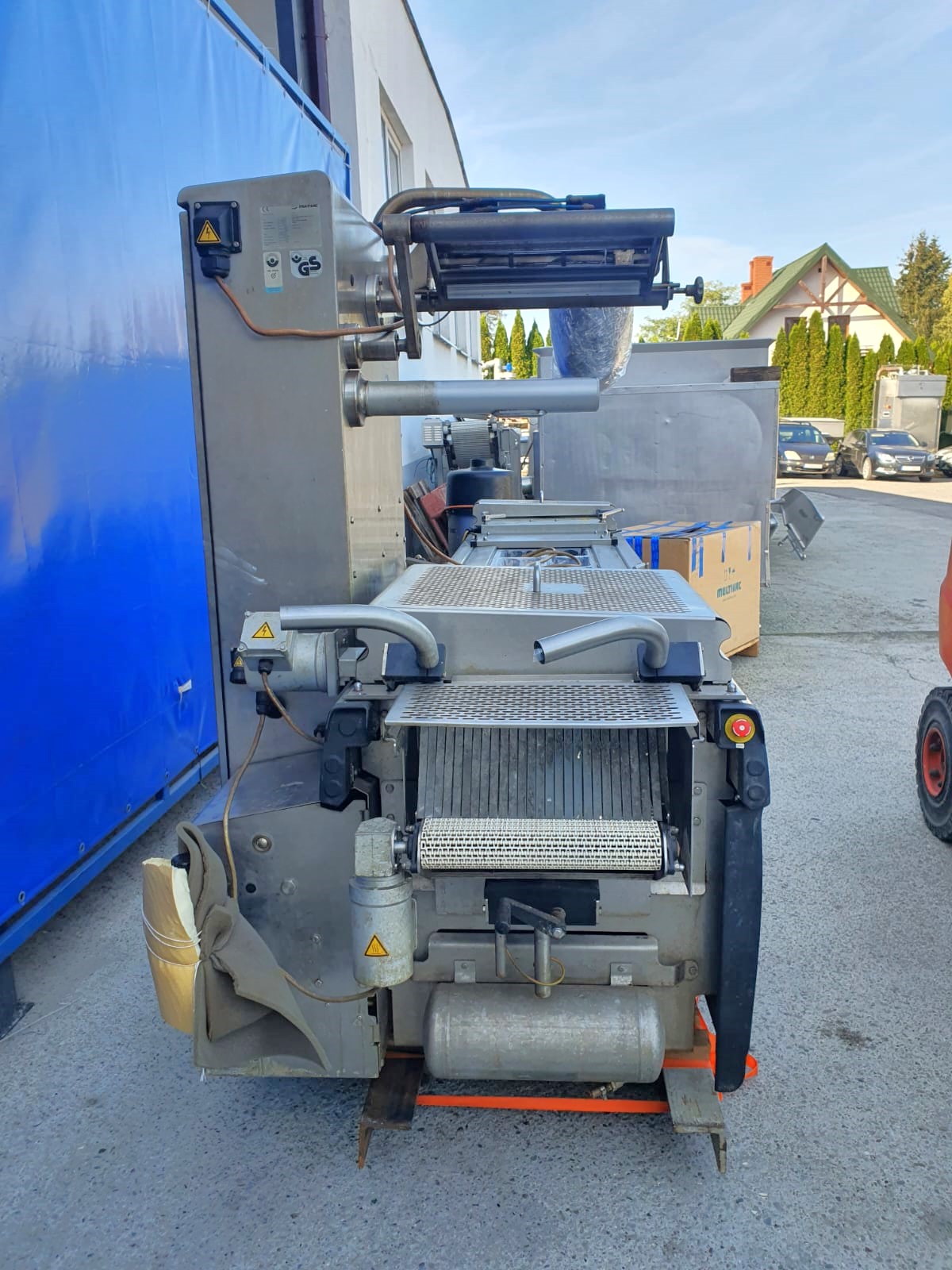 Multivac R145 jest maszyną pakującą o wysokiej wydajności. Opakowania mogą być napełniane ręcznie lub automatycznie od góry, następnie są hermetycznie zamykane folią górną i oddzielane od siebie.