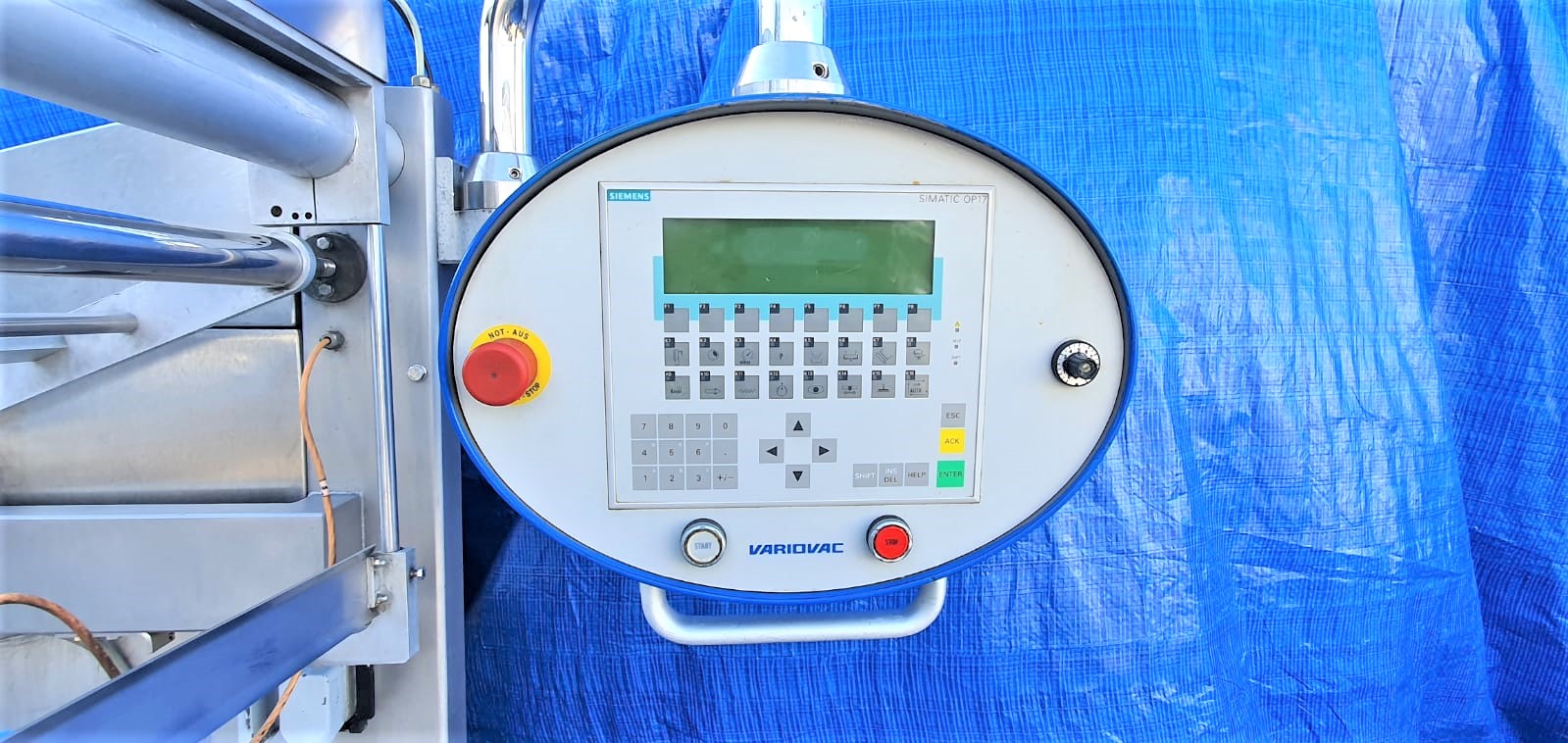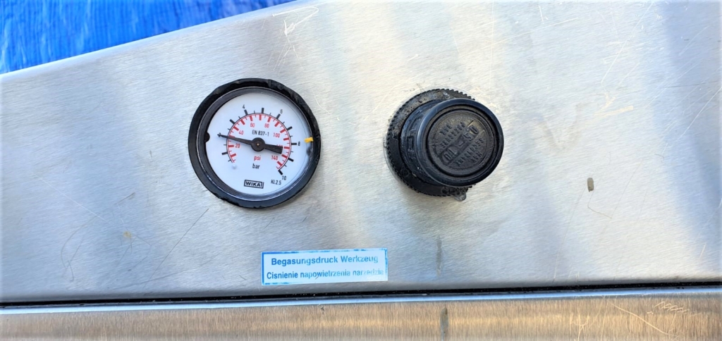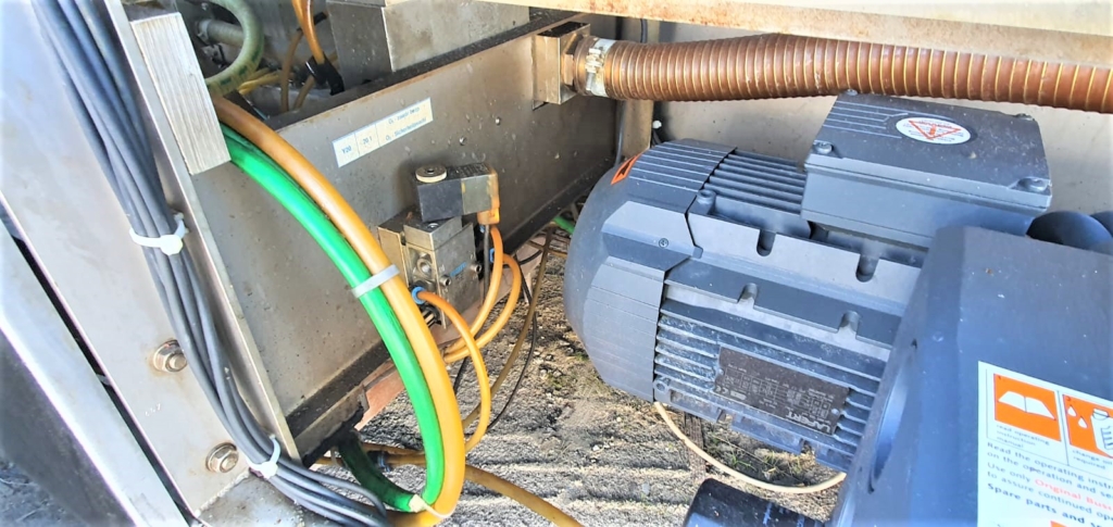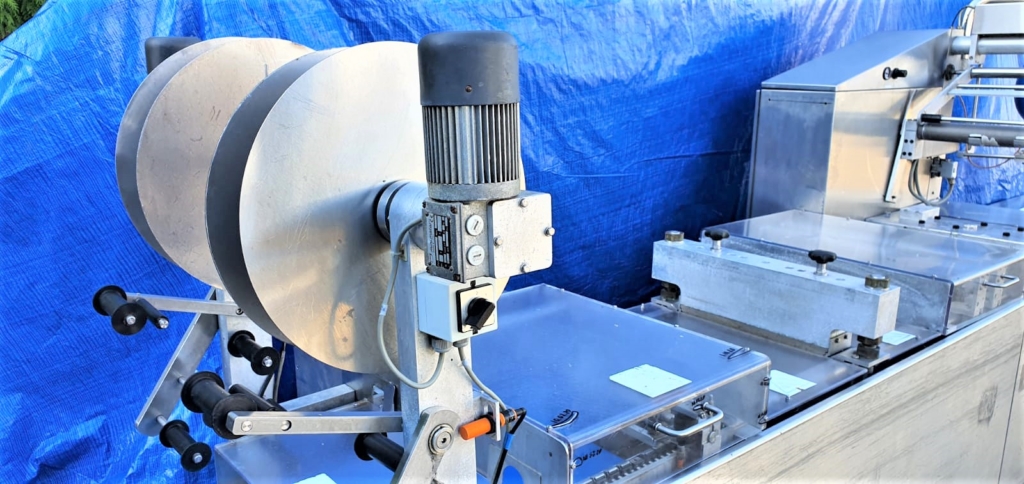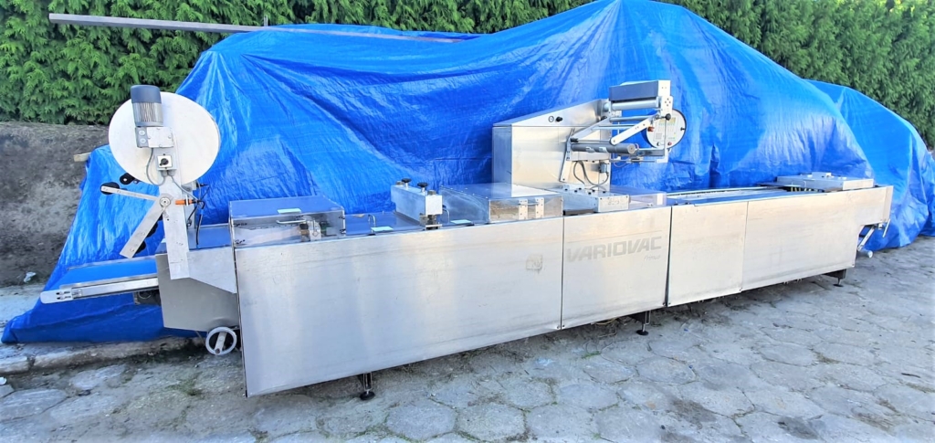 Używana pakowaczka rolowa (Termoformer) Variovac Primus. Przystosowana do pracy z folią twardą o szerokości 420 mm. Maszyna wyposażona jest w formy o podziałce 3.1 i wymiarze pojedynczej tacki: 21,5 x 11,5. Skok: 240 mm. W maszynie zainstalowane są dwie pompy Busch: