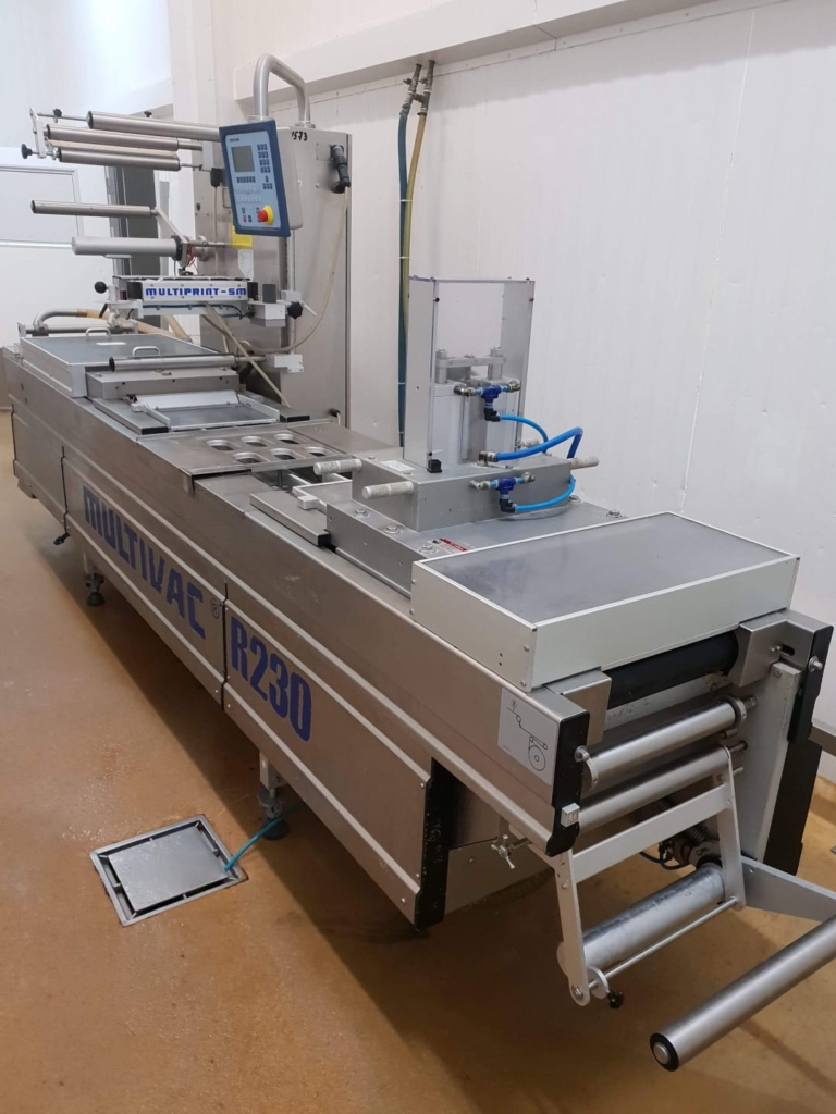 Multivac R230 to maszyna rolowa o wysokiej wydajnośći. Szerokość folii 420mm, skok taśmy 215mm. Dwie formy w zestawie.