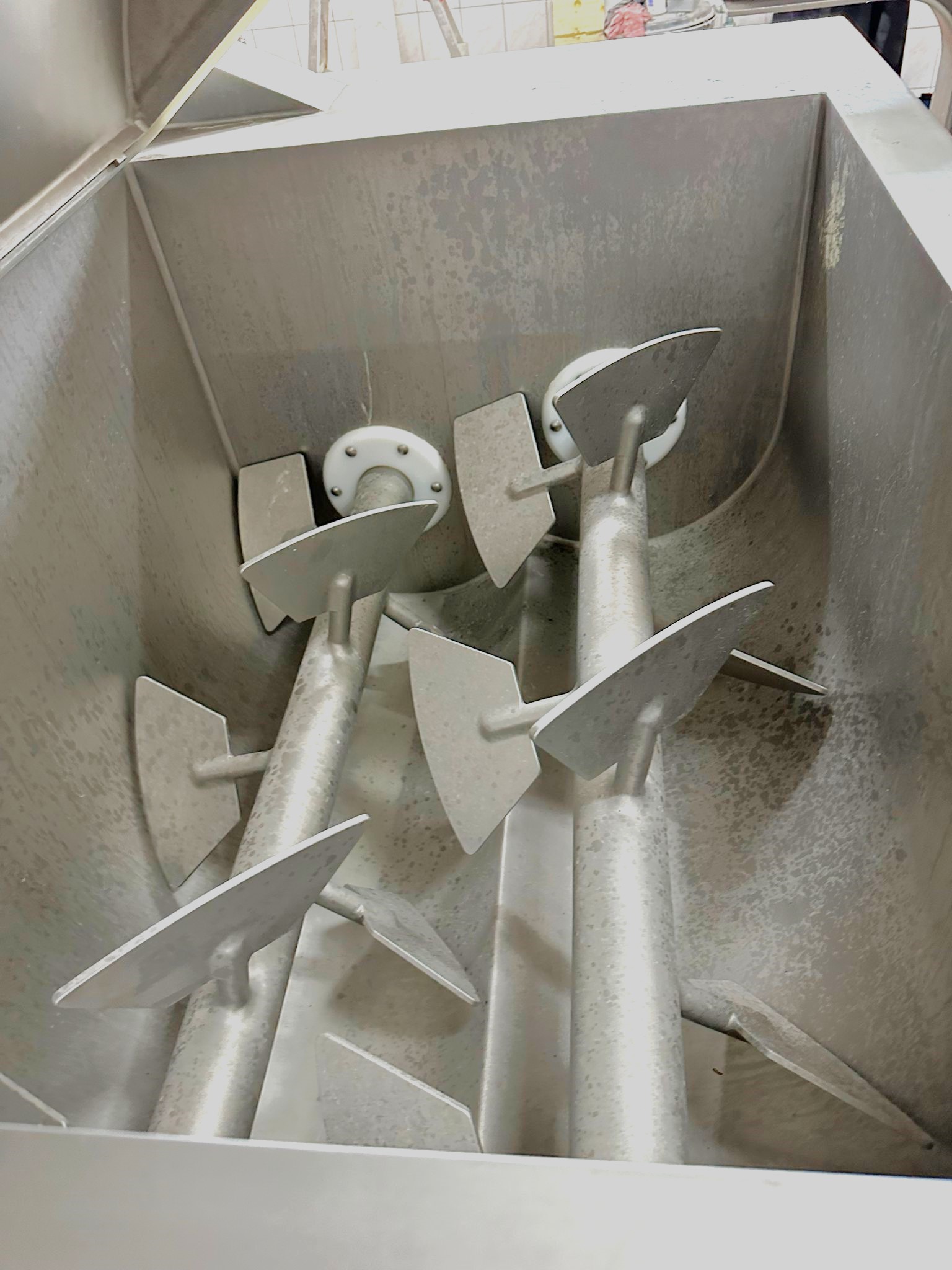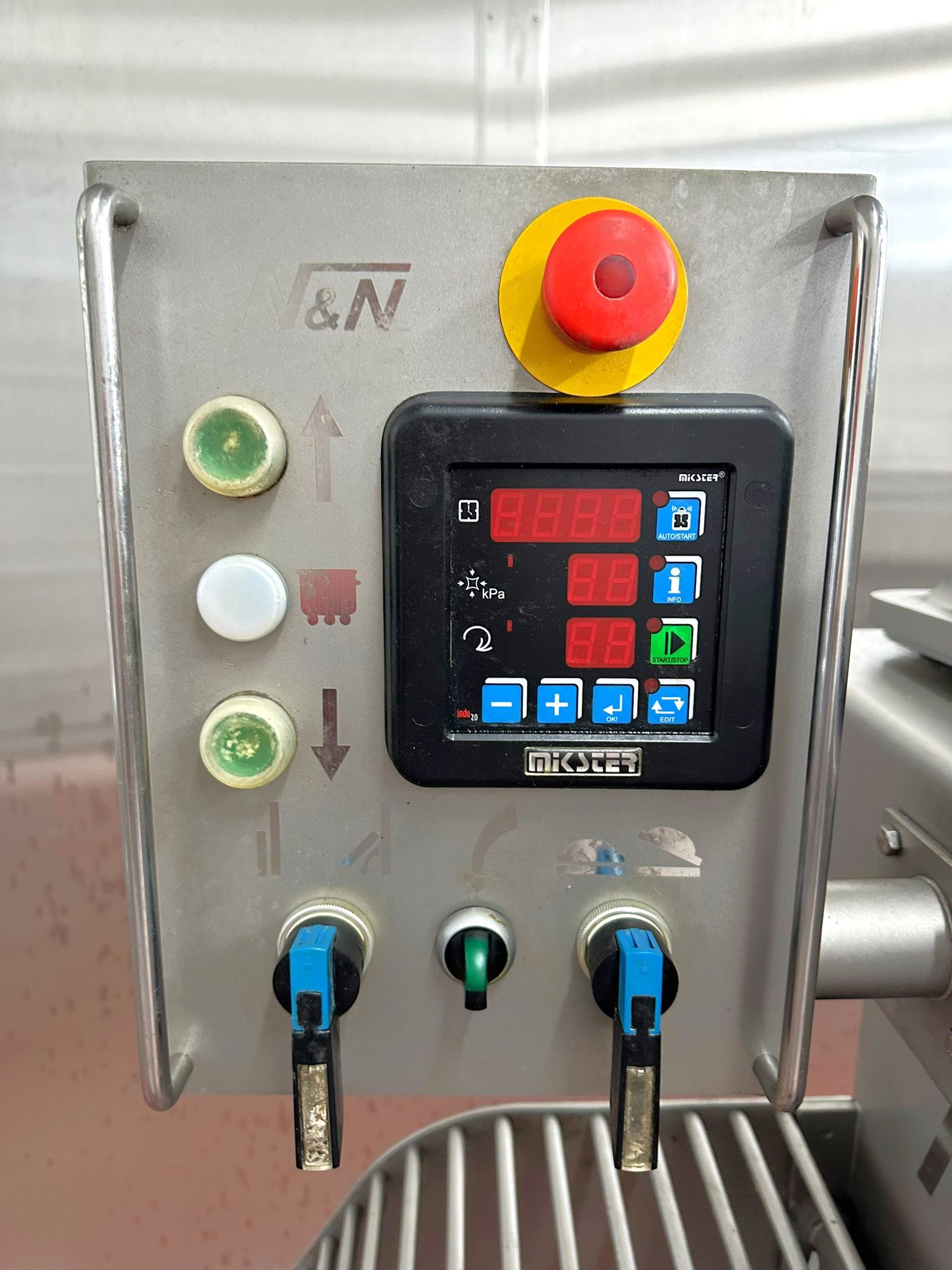 Używany mieszałka próżniowa N&N o pojemności 450 l z podwójnym mieszadłem może sprostać dużym wymaganiom produkcyjnym, oferując maksymalną pojemność wsadu 380 l. Urządzenie charakteryzuje się poborem mocy na poziomie 5 kW. Wyposażony w funkcję podwójnej prędkości obrotowej, umożliwiającą obrót w lewym i prawym kierunku w celu poprawy jakości mieszania.