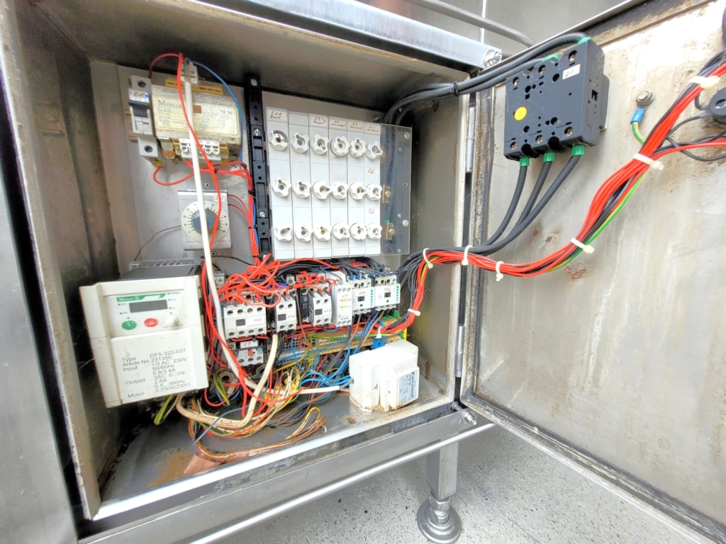 Napęd podawania: 0,37 kW, bezstopniowa regulacja prędkości podawania skrzynek