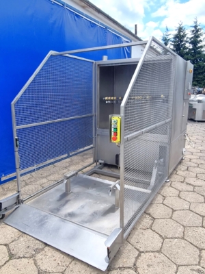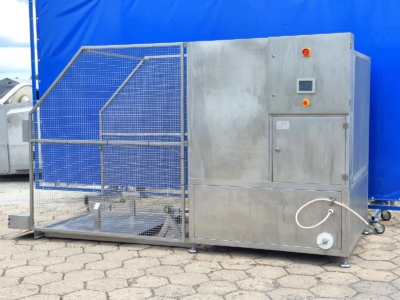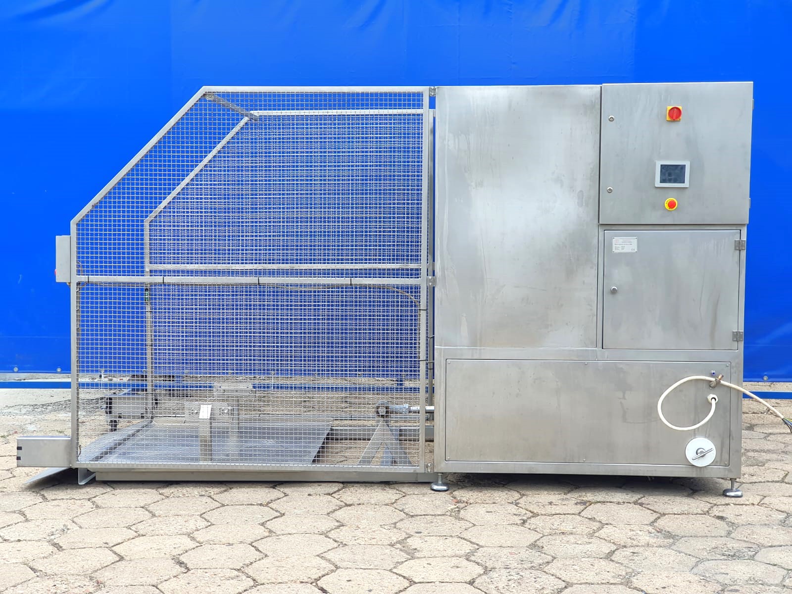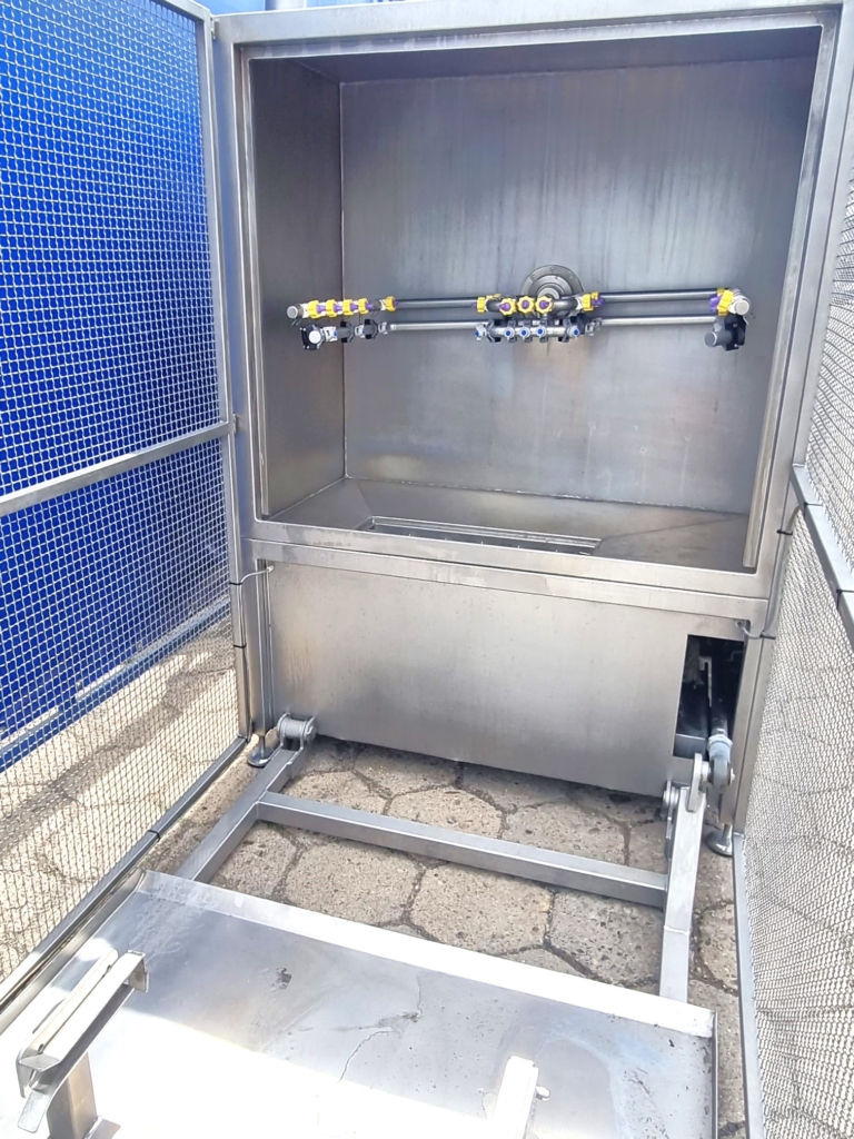 Konstrukcja wykonana jest ze stali nierdzewnej. Wydajny system podgrzewania wody myjącej z zamkniętym obiegiem wody. Urządzenie składa się z komory myjąco-płuczącej z obrotowym ramieniem spryskującym i systemem dysz oraz pokrywy – windy, która transportuje wózek do komory.