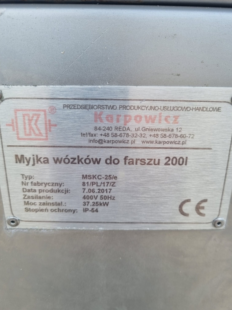 Maszyna służy do mycia cymbrów (200 litrów) w ilości do 25 sztuk na godzinę. Zapewnia wysoką skuteczność mycia i dezynfekcji.