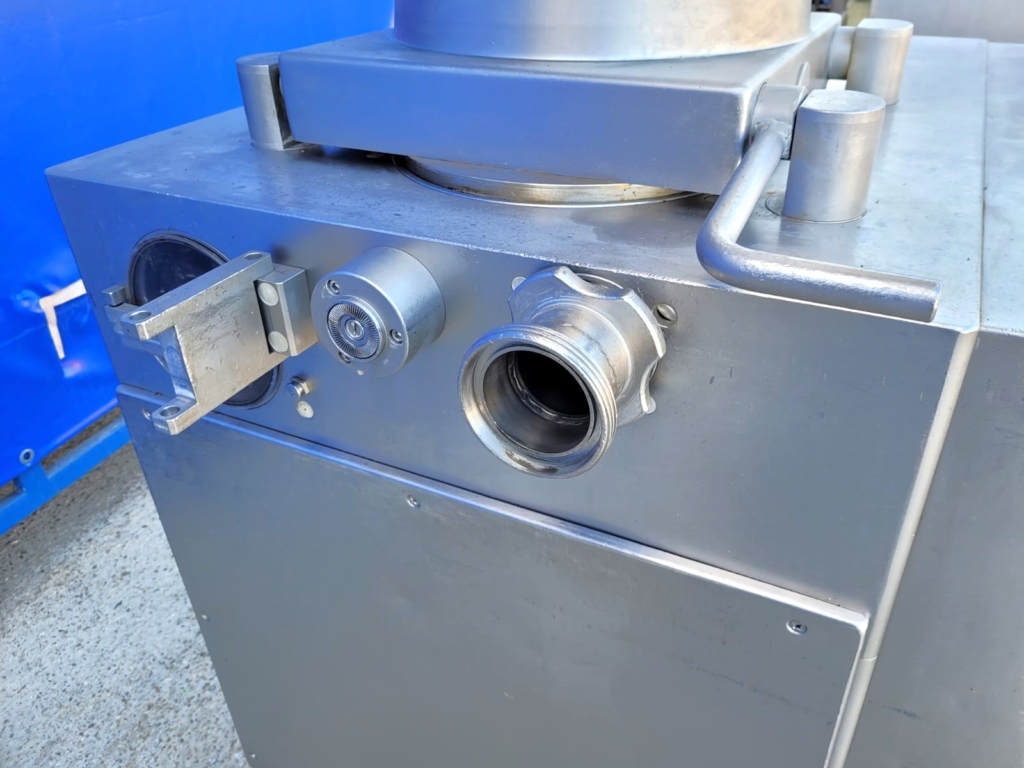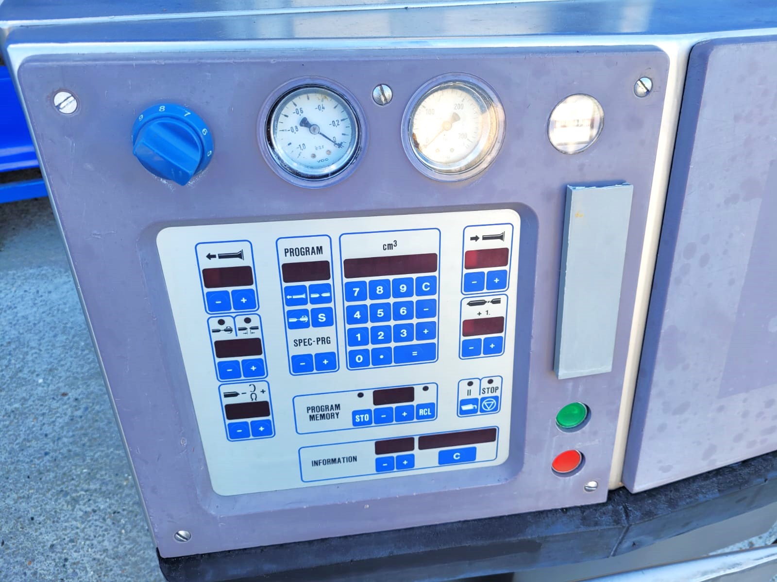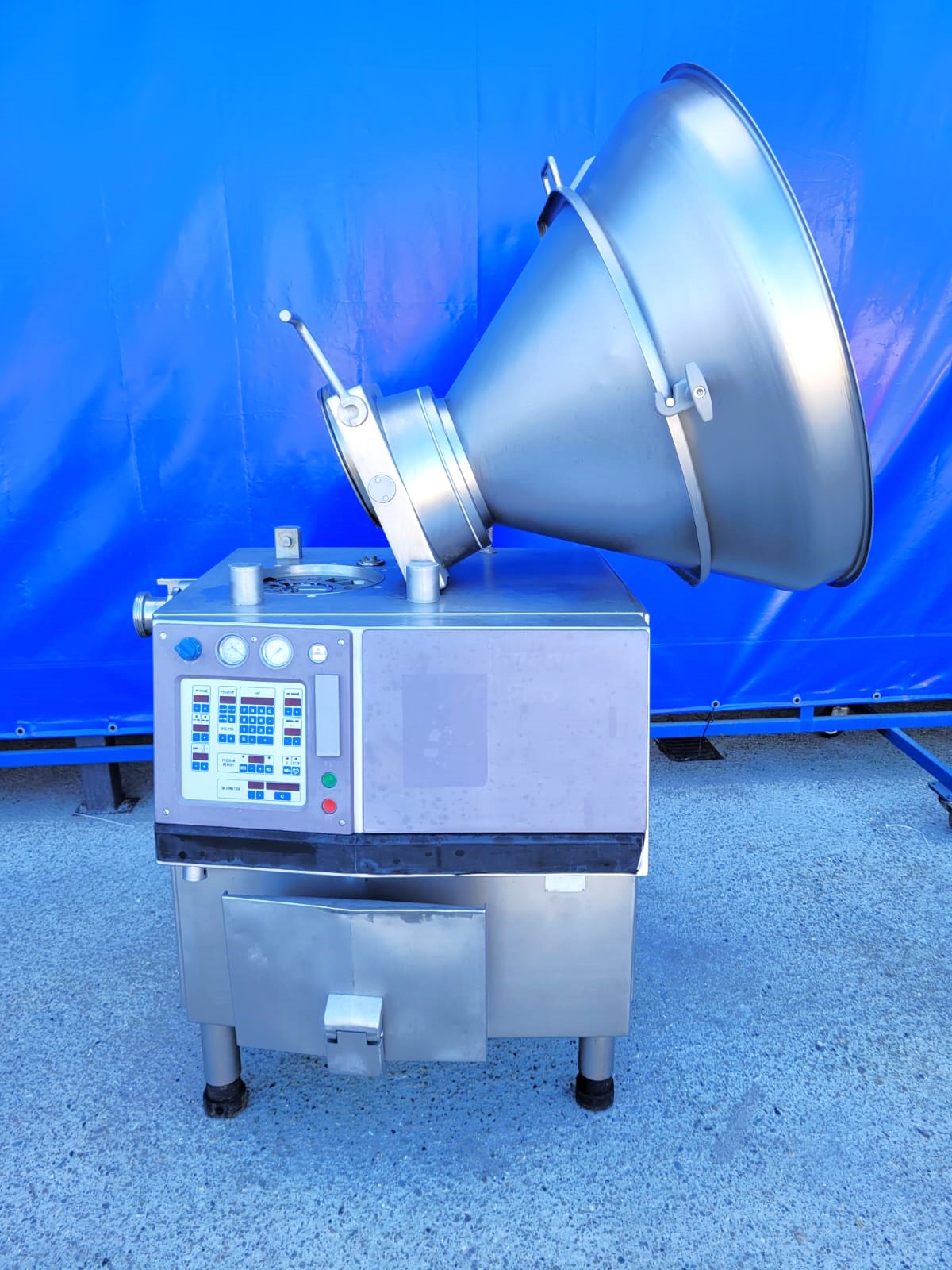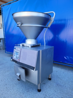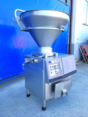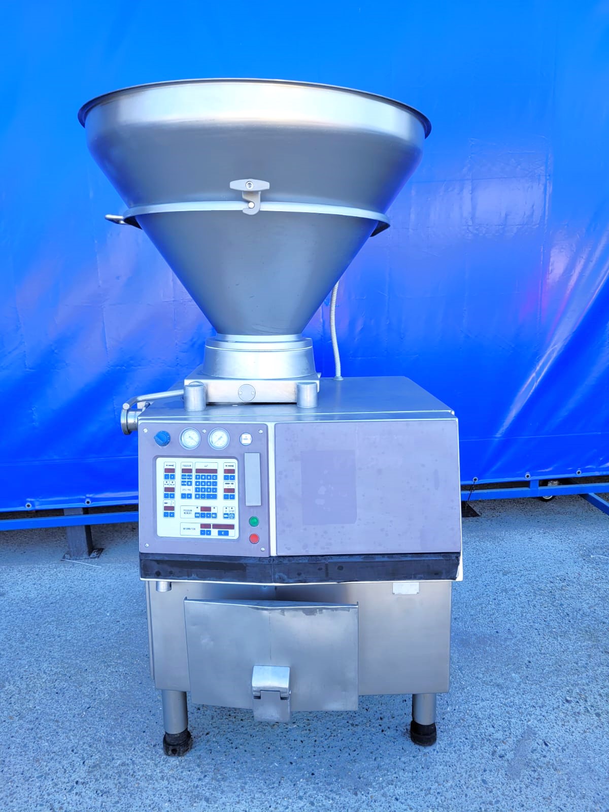 Używana nadziewarka HANDTMANN VF 200 to urządzenie o bardzo dużej wydajności, do 5000 kg/h, służy do nadziewania rożnego rodzaju wyrobów mięsnych, głównie kiełbas i parówek. Wielkość porcji od 5 do 100 000 g. Maszyna posiada system okręcania i podtrzymywania kiełbasek