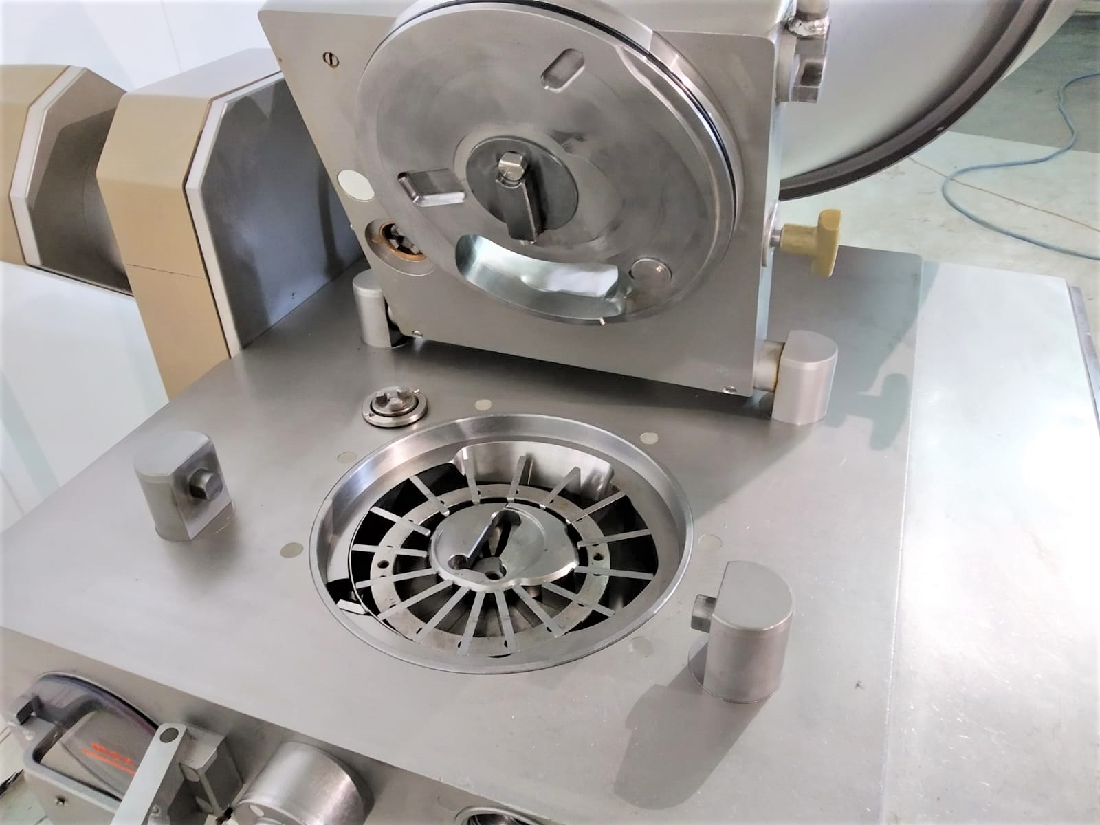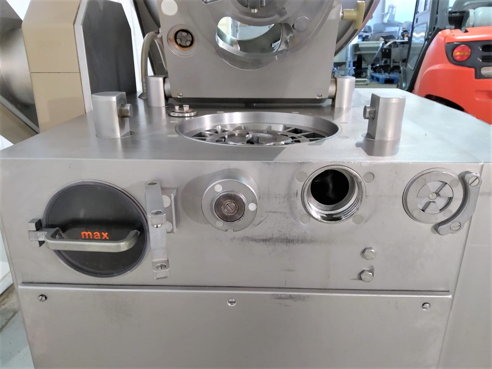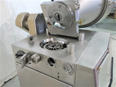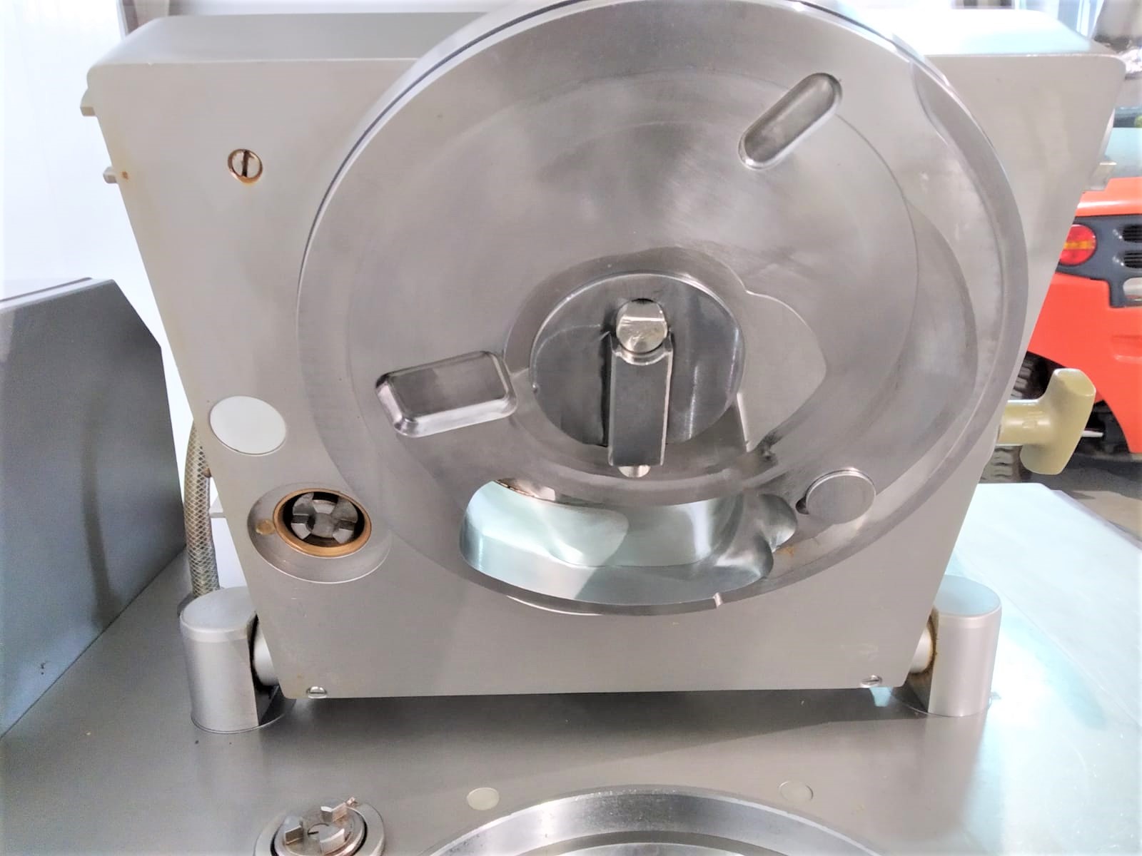 Nadziewarka Handtmann VF200B, wyposażona w mechanizm okręcarki, przygotowana pod głowicę wilkującą Handtmann GD 93-3. Maszyna posiada zintegrowany załadunek do standardowych 200l pojemników.