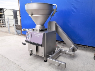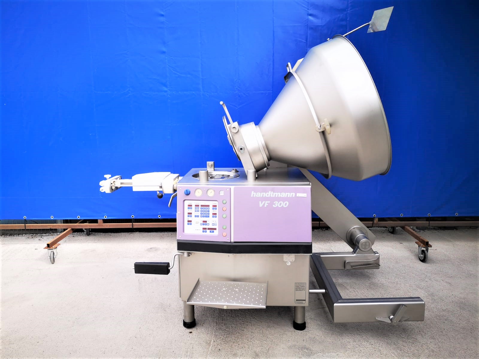 Używana nadziewarka HANDTMANN VF 300 to urządzenie o bardzo dużej wydajności, do 10000 kg/h. Zakres porcjowania porcji od 5 do 100 000 g. Urządzenie sterowane za pomocą zintegrowanego układu sterowania. Maszyna posiada zintegrowany załadunek do standardowych 200l pojemników.