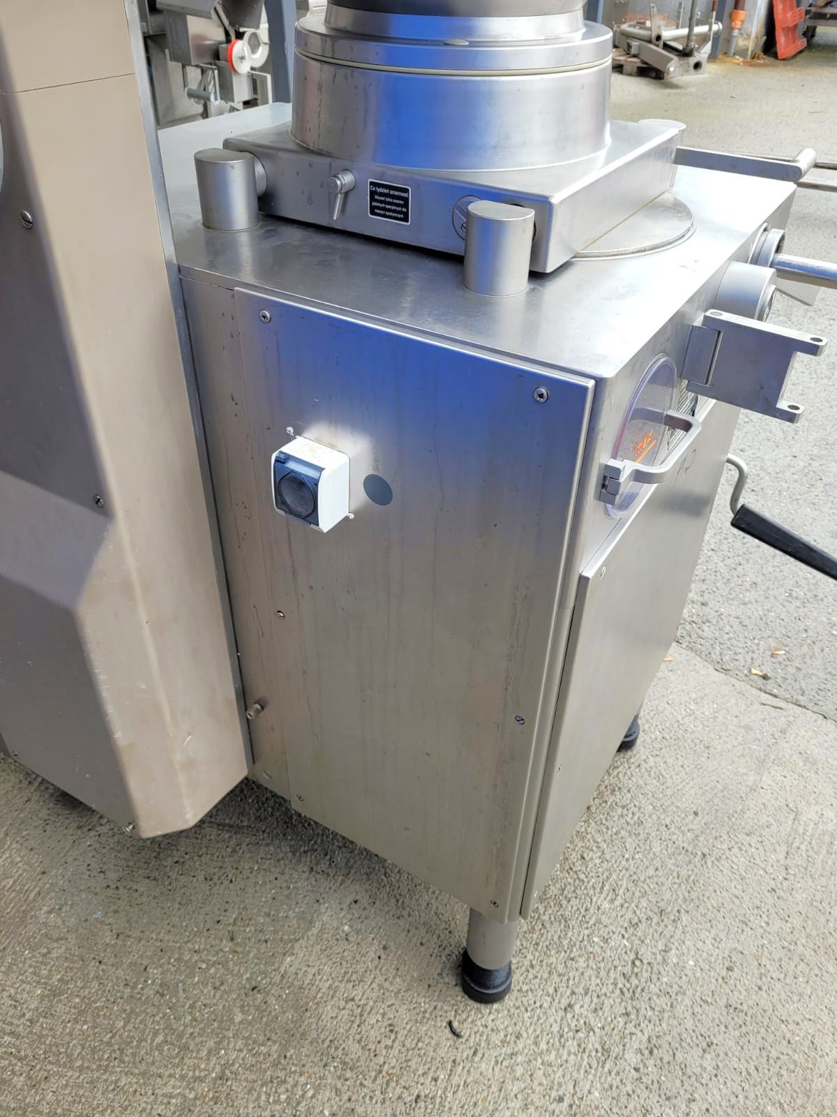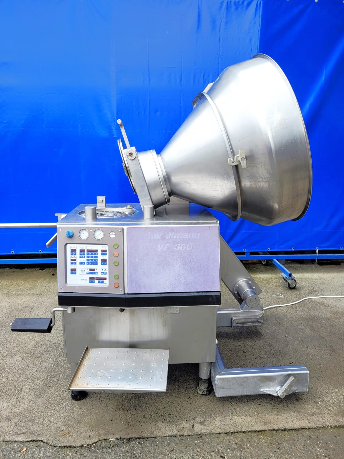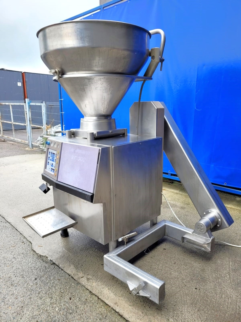 Używana nadziewarka HANDTMANN VF 300B to urządzenie o bardzo dużej wydajności, do 10000 kg/h. Zakres porcjowania porcji od 5 do 100 000 g. Urządzenie sterowane za pomocą łatwego w obsłudze panelu sterowania. Maszyna posiada załadunek do standardowych 200l pojemników.