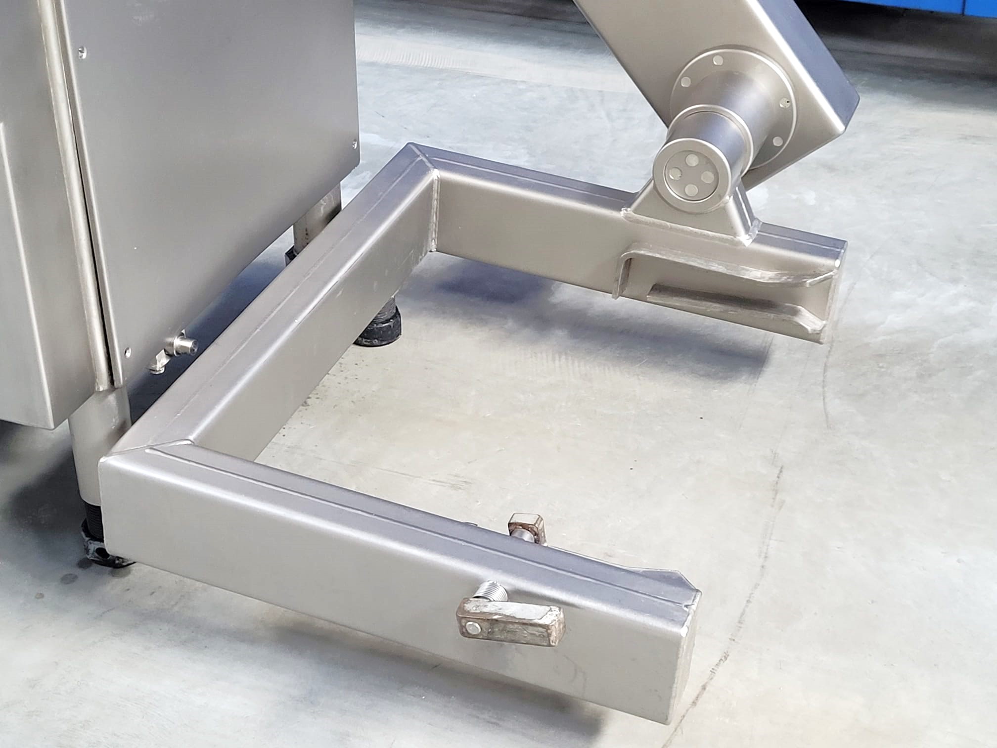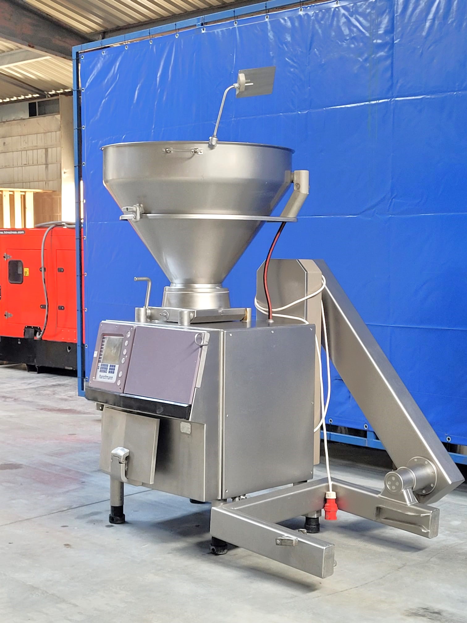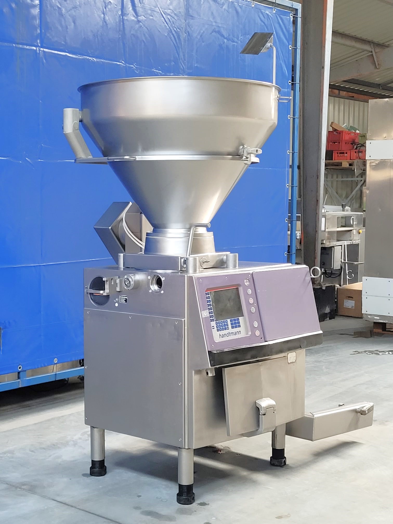 Używana nadziewarka Handtmann VF 300B oferuje bardzo wysoką wydajność, z prędkością napełniania do 10 000 kg/h, dzięki czemu nadaje się do produkcji na dużą skalę. Nadziewarka może obsługiwać szeroki zakres porcjowania, umożliwiając precyzyjne napełnianie produktów od 5 gramów do 100 000 gramów. Jest wyposażona w standardowy podnośnik pojemników na mięso o pojemności 200 litrów i ma możliwość napełniania pod ciśnieniem do 35 barów.