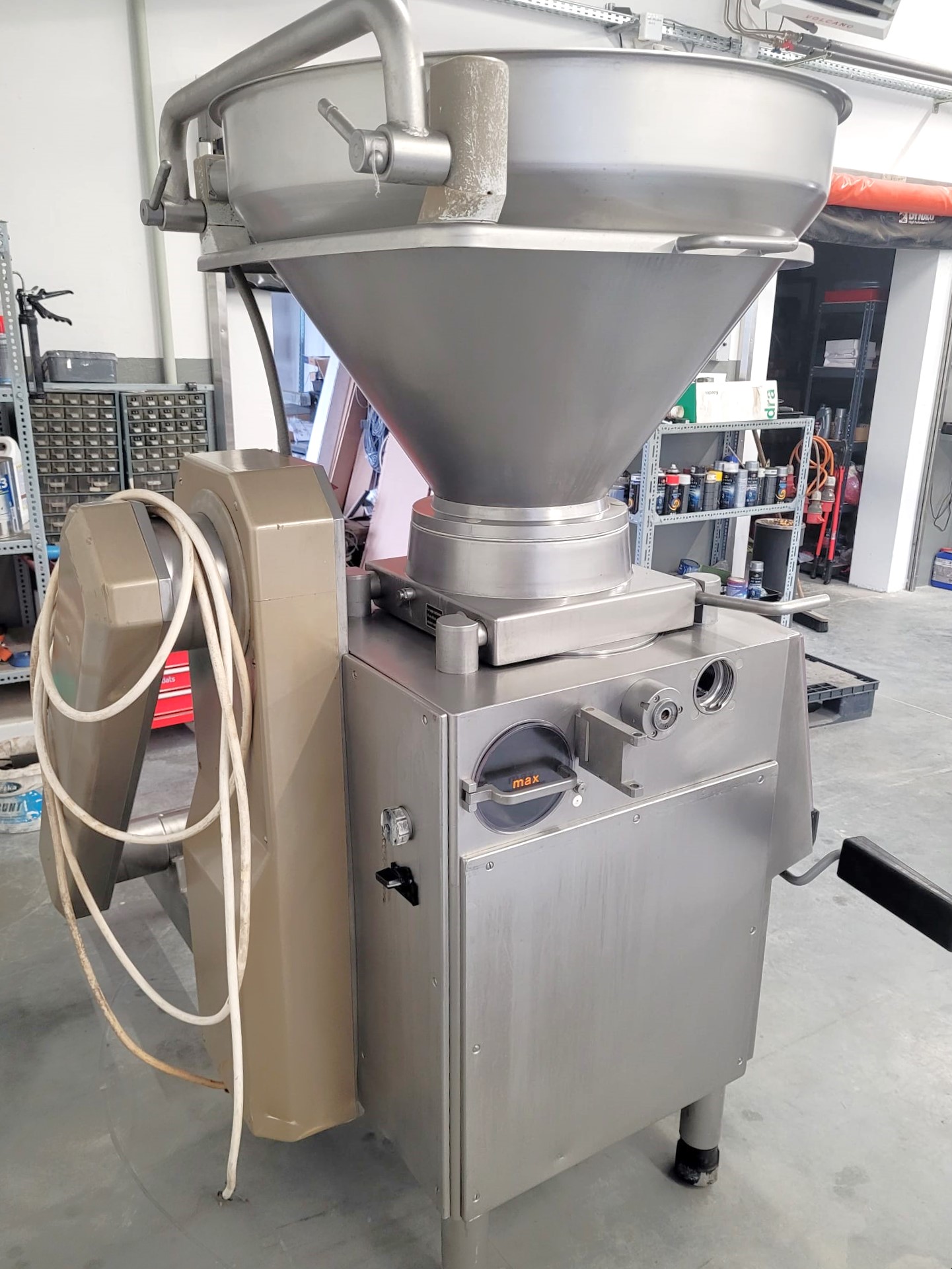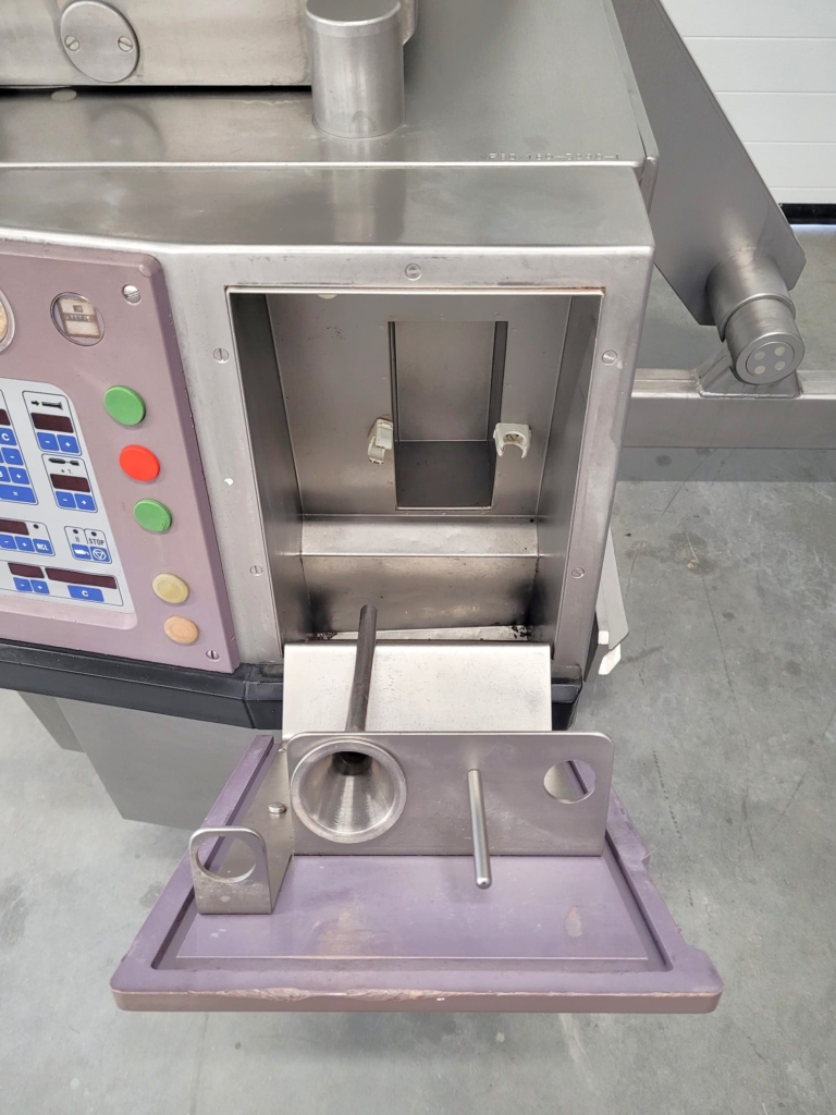 Nadziewarka Handtmann VF 80B wyróżnia się wyjątkową wydajnością, szczycąc się szybkością napełniania sięgającą 3000 kg/godz. To czyni ją doskonałym wyborem do produkcji na skalę przemysłową. Wszechstronne możliwości porcjowania pozwalają na dokładne napełnianie w zakresie od zaledwie 5 do 100 000 gramów i mogą wywierać ciśnienie napełniania do 35 barów. Uzupełnieniem nadziewarki jest standardowy podnośnik do pojemników na mięso o pojemności 100 litrów.