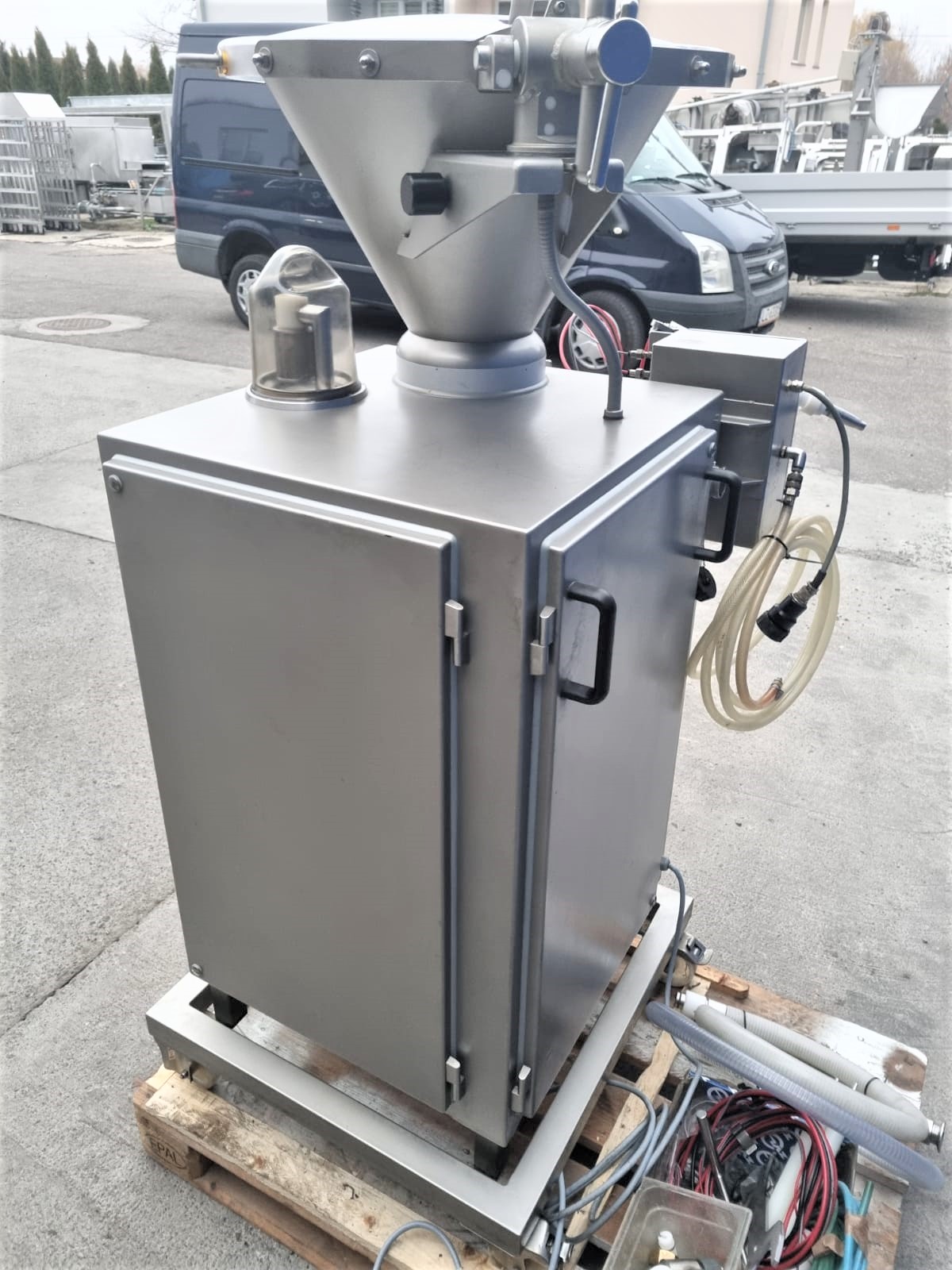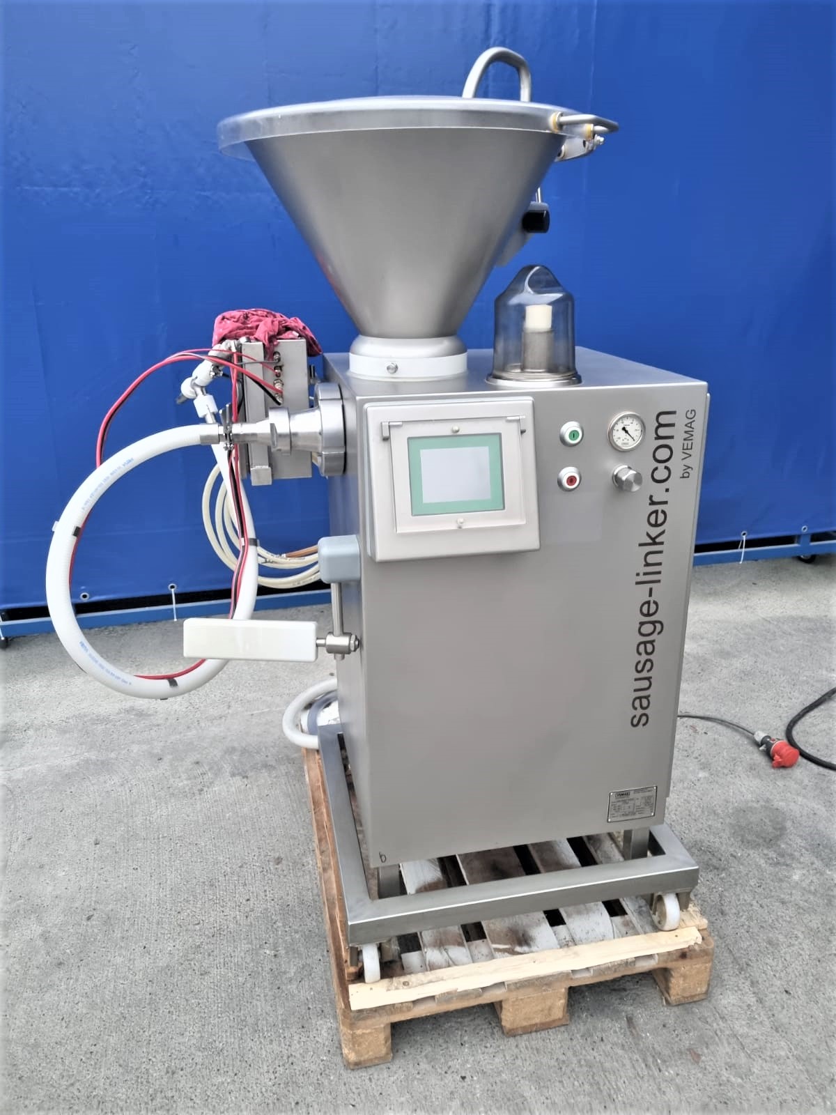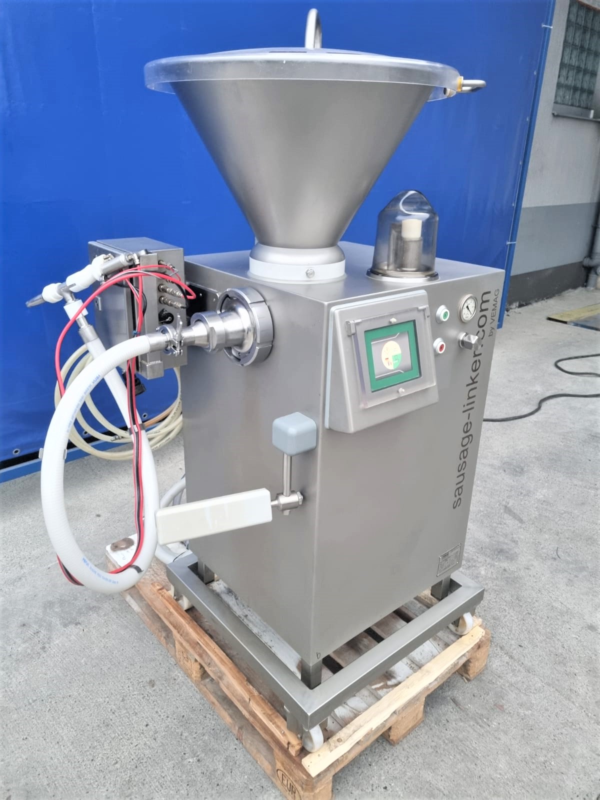 Używana nadziewarka Vemag Lucky linker jest niezwykle uniwersalna i umożliwia produkcję wszystkich rodzajów kiełbas w osłonkach naturalnych, kolagenowych lub celulozowych. Ten kompaktowy model może produkować prawie wszystko, od paluszków mięsnych o małej średnicy i parówek koktajlowych, poprzez świeżą kiełbasę, bratwurst i frankfurterki, aż po pepperoni i salami… oraz wszystko pomiędzy.