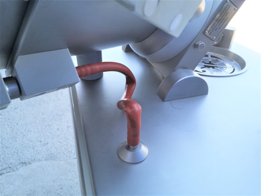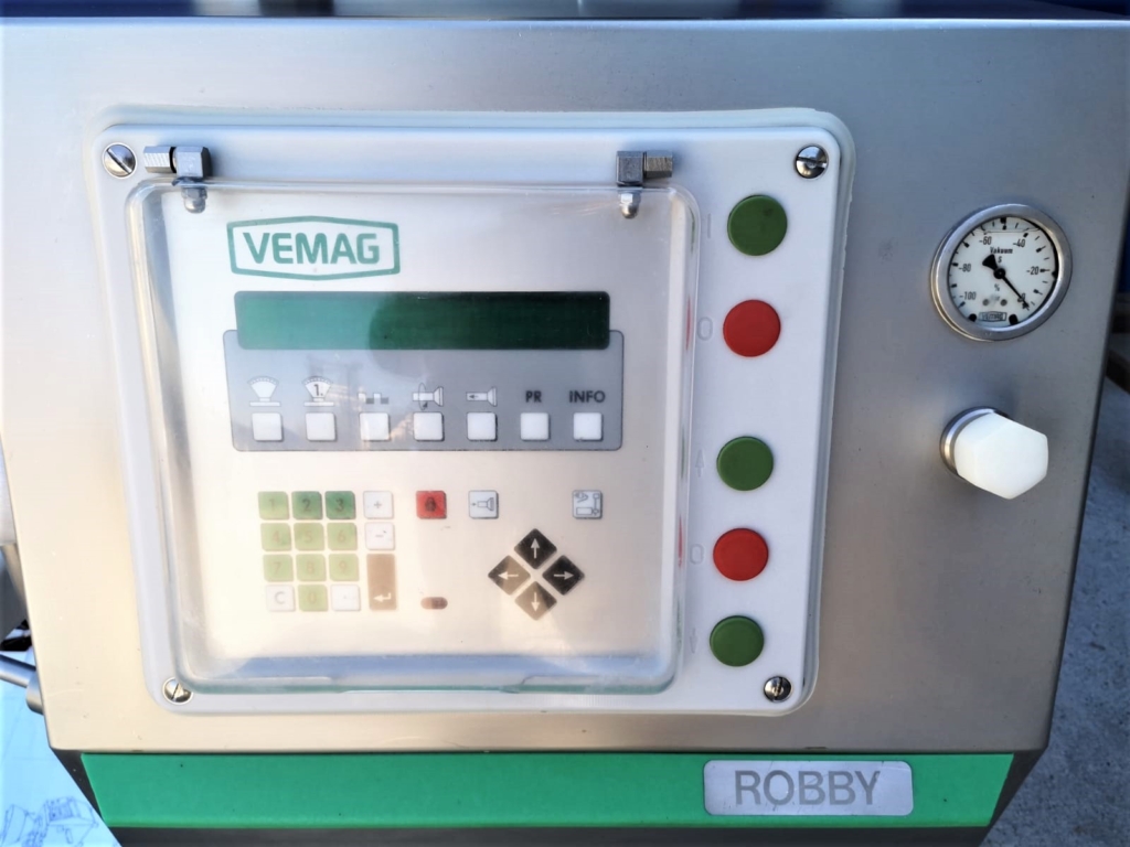 Używana nadziewarka próżniowa Vemag Robby posiada łopatkową pompę farszu, idealna dla małych i średnich zakładów produkcyjnych. Urządzenie gwarantuje wydajność nadziewania do 2.300 kg/godz oraz ważenie porcji w zakresie od 5 do 99.999 g. Całość wykonana ze stali kwasoodpornej co gwarantuje najwyższą higienę pracy oraz łatwość utrzymania.