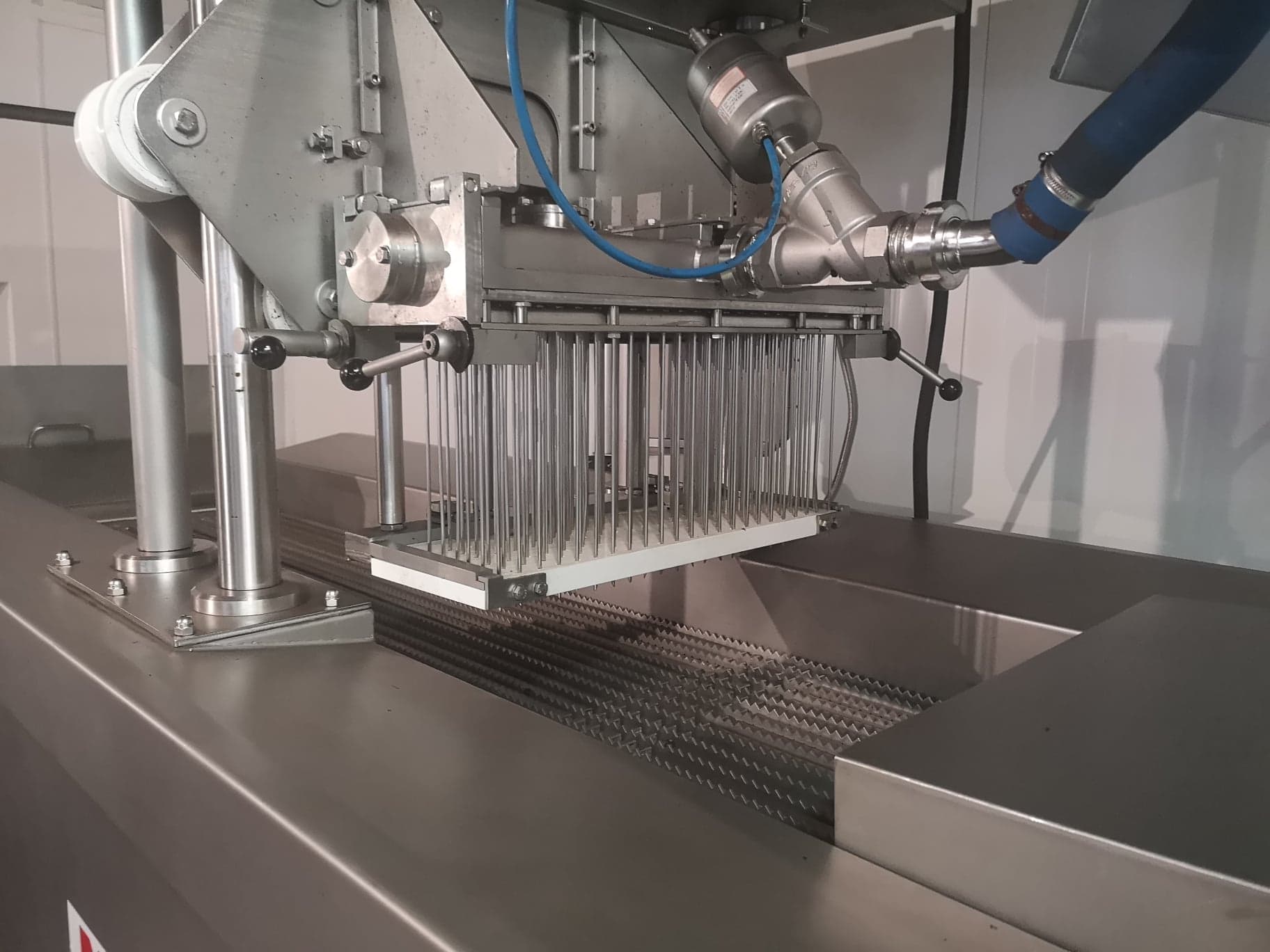 Linia do produkcji „mięsa w mięsie” składająca się z podzespołów takich jak nastrzykiwarka oraz stacja przygotowania solanki Inject Star oraz kutra przelotowego Karl Schnell.