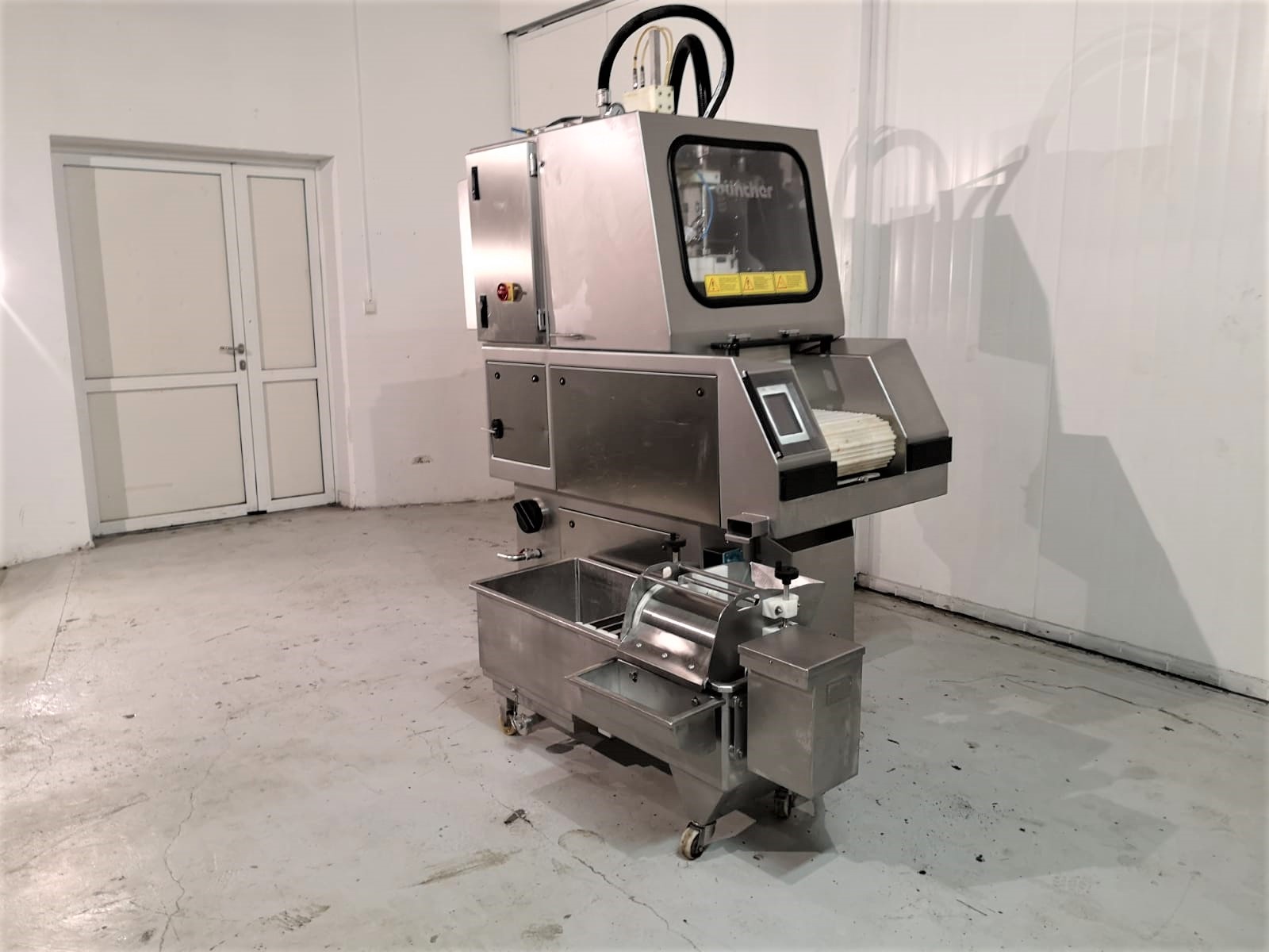 Nastrzykiwarka do mięsa Gunther PI54 MC2R, to urządzenie przeznaczone do wprowadzania poprzez igły, solanki do produktu takiego jak mięso czerwone, drób czy ryba. Sterowanie maszyną odbywa się poprzez sterownik ciekłokrystaliczny. Poprzez nastrzyk w 105 miejscach urządzenie zapewnia równomierny i dokładny proces. Taśma transportowa o szerokości 365 mm i maksymalna wysokość produktu 200mm