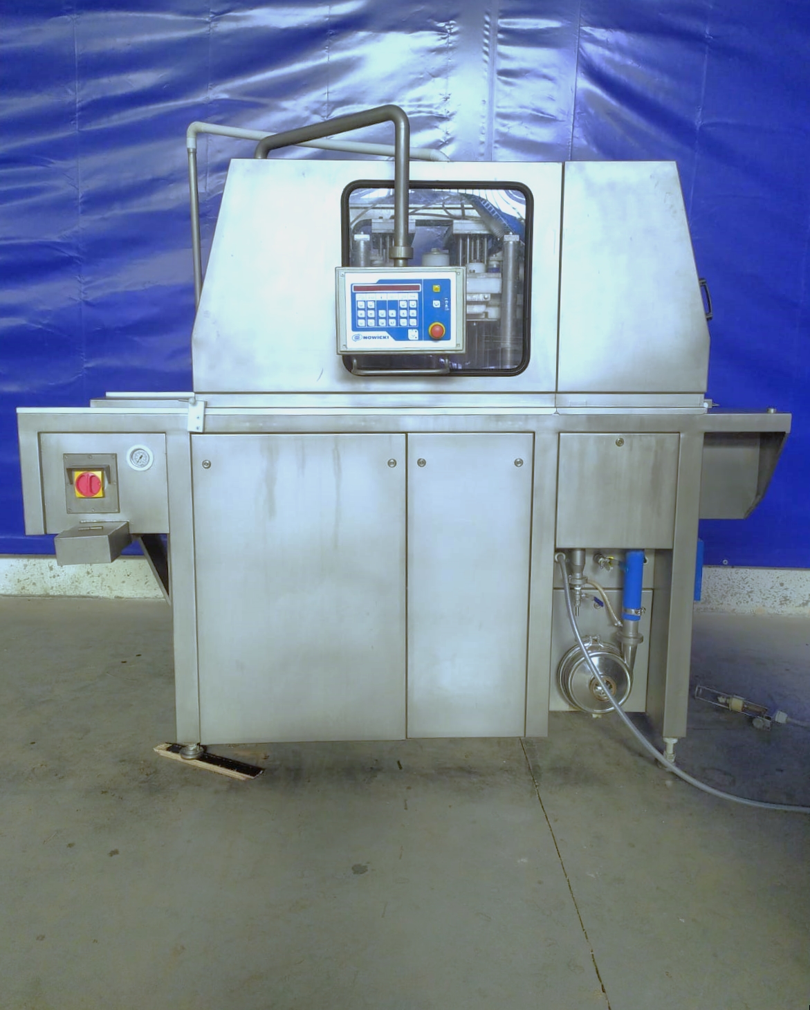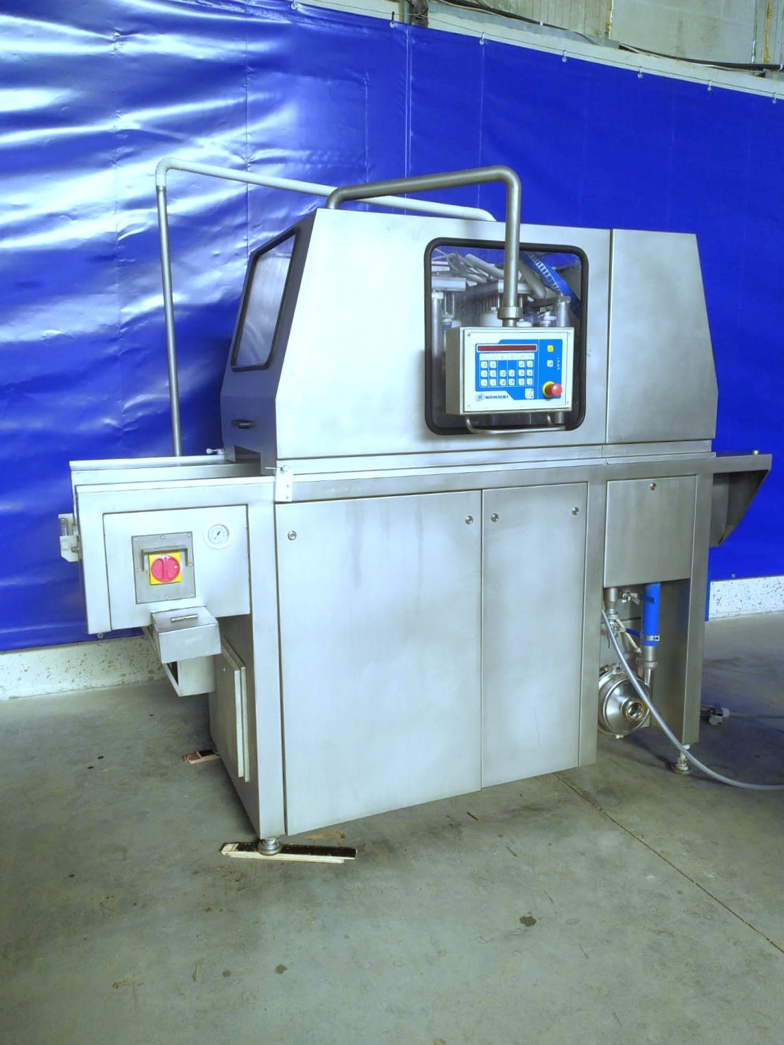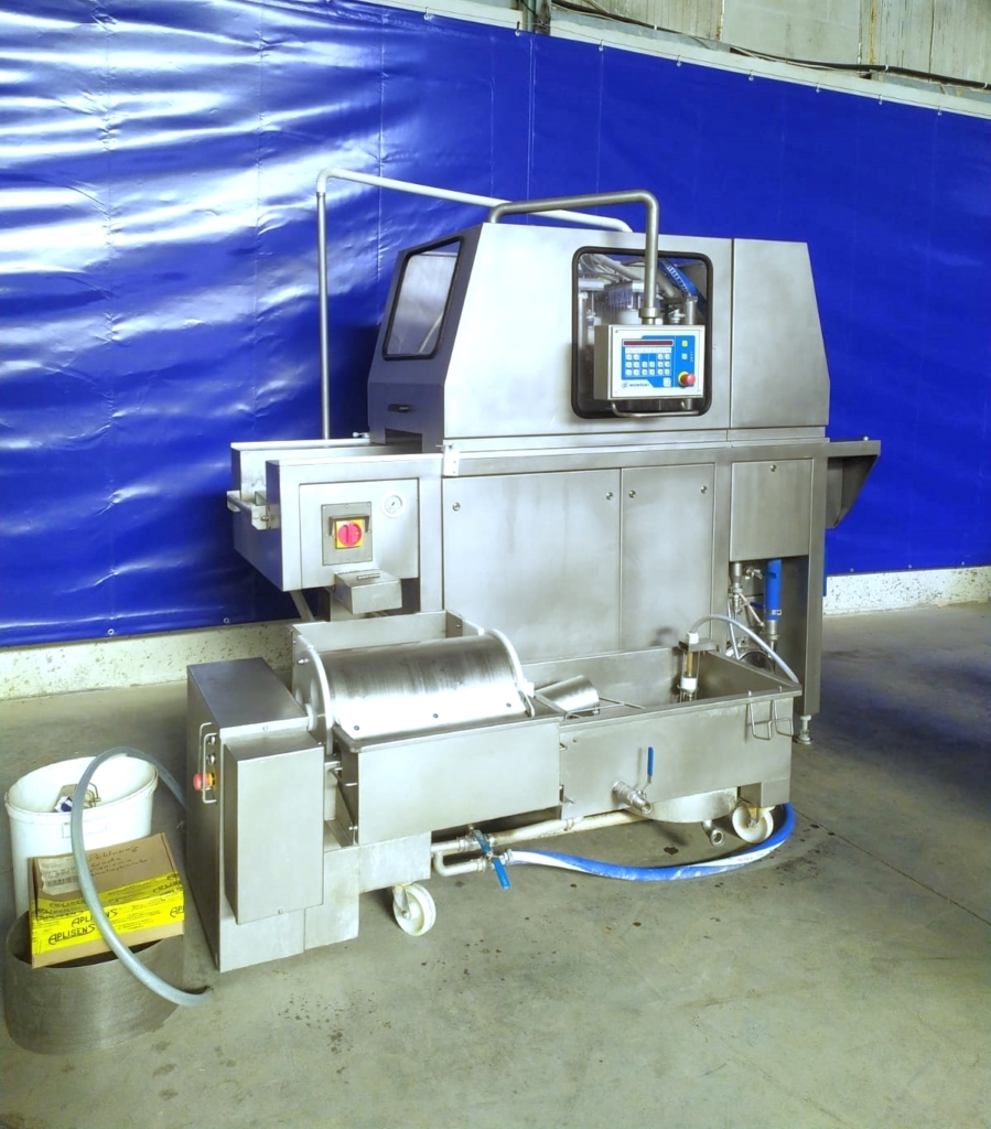 Używany nastrzykiwarka Metalbud Nowicki MH140 jest urządzeniem o wysokiej wydajności. Wyposażona w pojedynczą głowicę, łatwe i przejrzyste sterowanie za pomocą intuicyjnego panelu oraz wydajny obrotowy filtr bębnowy do filtracji solanki.