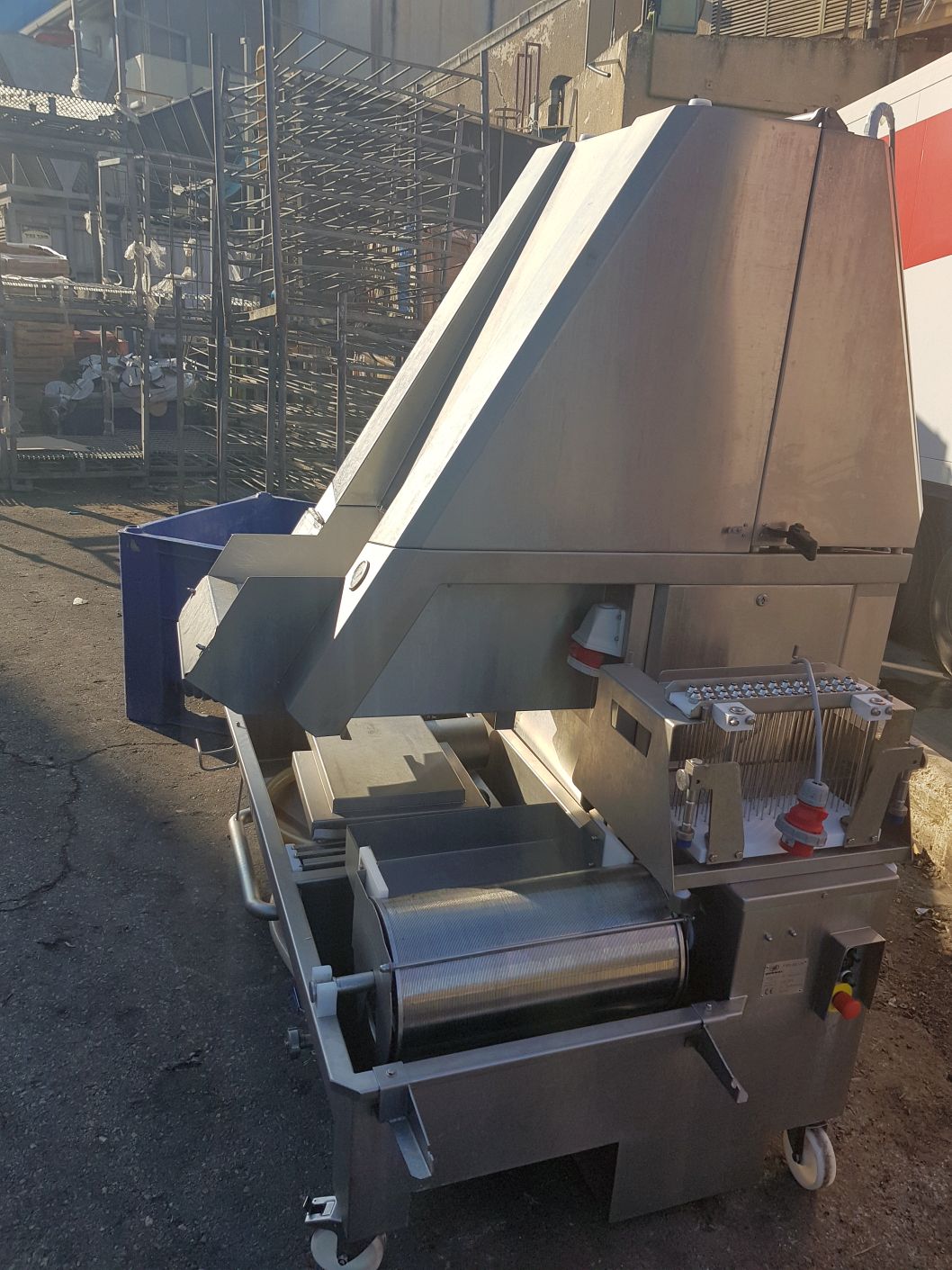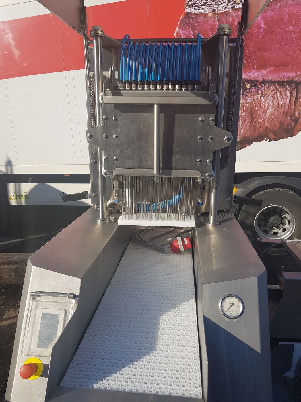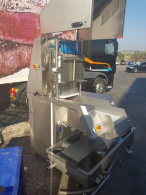 Nastrzykiwarka solanki przeznaczona do równomiernego rozprowadzania solanki przy produkcji wołowiny/jagnięciny/cielęciny. Możliwe jest również nastrzykiwanie innych mięs dla produktu bez kości. Po zmianie igieł na mniejszą średnicę możliwe jest nastrzykiwanie dowolnego rodzaju produktów drobiowych. Maszyna wyposażona jest w igły pracujące na ciśnieniu do 3,2 bara, filtr solanki oraz zapasową głowicę igłową. Używana tylko przez rok, stan jak nowy. Zbudowana zgodnie z wszystkimi dyrektywami CE, kompletna konstrukcja ze stali nierdzewnej. Ta automatyczna nastrzykiwarka solanki posiada 39 gniazd z 79 igłami.
