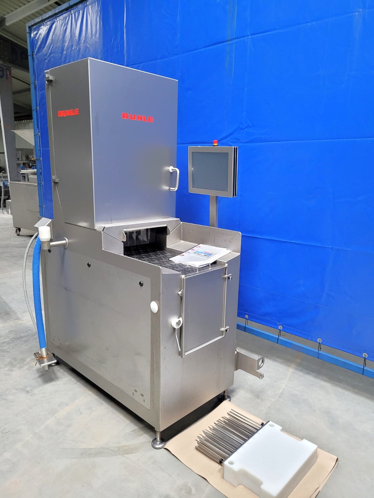 Nastrzykiwarka Ruhle IR56, wyposażona w zestaw 56 igieł i odpowiadającą im liczbę ostrzy nacinających, przeznaczona jest do obróbki różnych rodzajów mięsa – zarówno z kośćmi, jak i bez, w tym drobiu, mięsa i ryb. Dzięki zastosowaniu zaawansowanej technologii sterowania mikroprocesorowego możliwa jest precyzyjna regulacja wszystkich parametrów procesu, co przekłada się na jednorodność i wysoką jakość produktów końcowych. Zapewnia precyzyjne dozowanie solanki do każdej igły, co zwiększa wydajność i dokładność procesu.