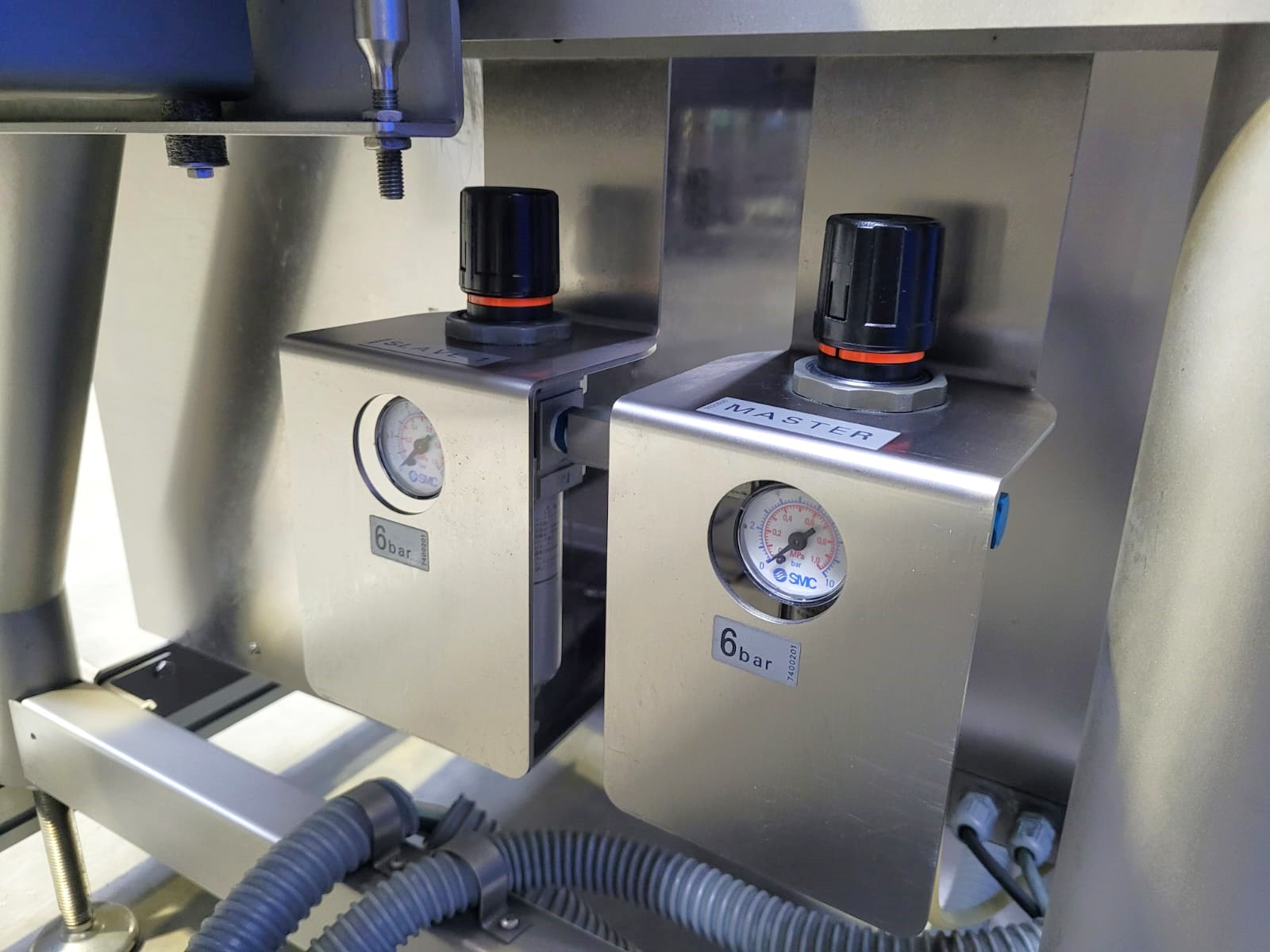 Urządzenie jest wyposażone w przenośnik taśmowy do pakowania o szerokości 300 mm, wagę o długości 500 mm i zakresie ważenia do 6 kg, dokładność wskazań e = 2g oraz drukarkę termiczną.