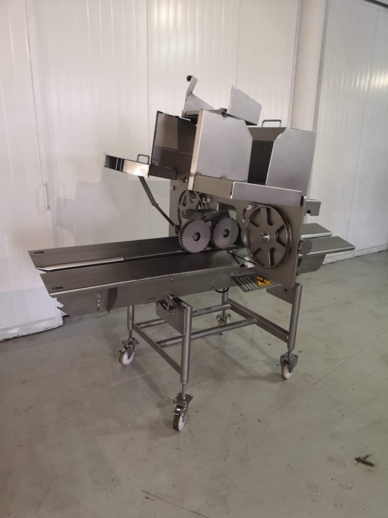 Piła do odcinania kręgosłupa BBC1500W to automatyczna piła, która usuwa żeberka z kręgosłupa wieprzowego, wołowego lub cielęcego. Kręgosłup jest podawany na stół podający, gdzie koła podające wciągają go do maszyny i ponad krawędź tnącą piły taśmowej, która oddziela żeberka od kręgosłupa. Resztki kręgosłupa są rozładowywane na drugim końcu maszyny, żeberka opadają na taśmę przenośnika w celu pakowania lub dalszego przetwarzania.