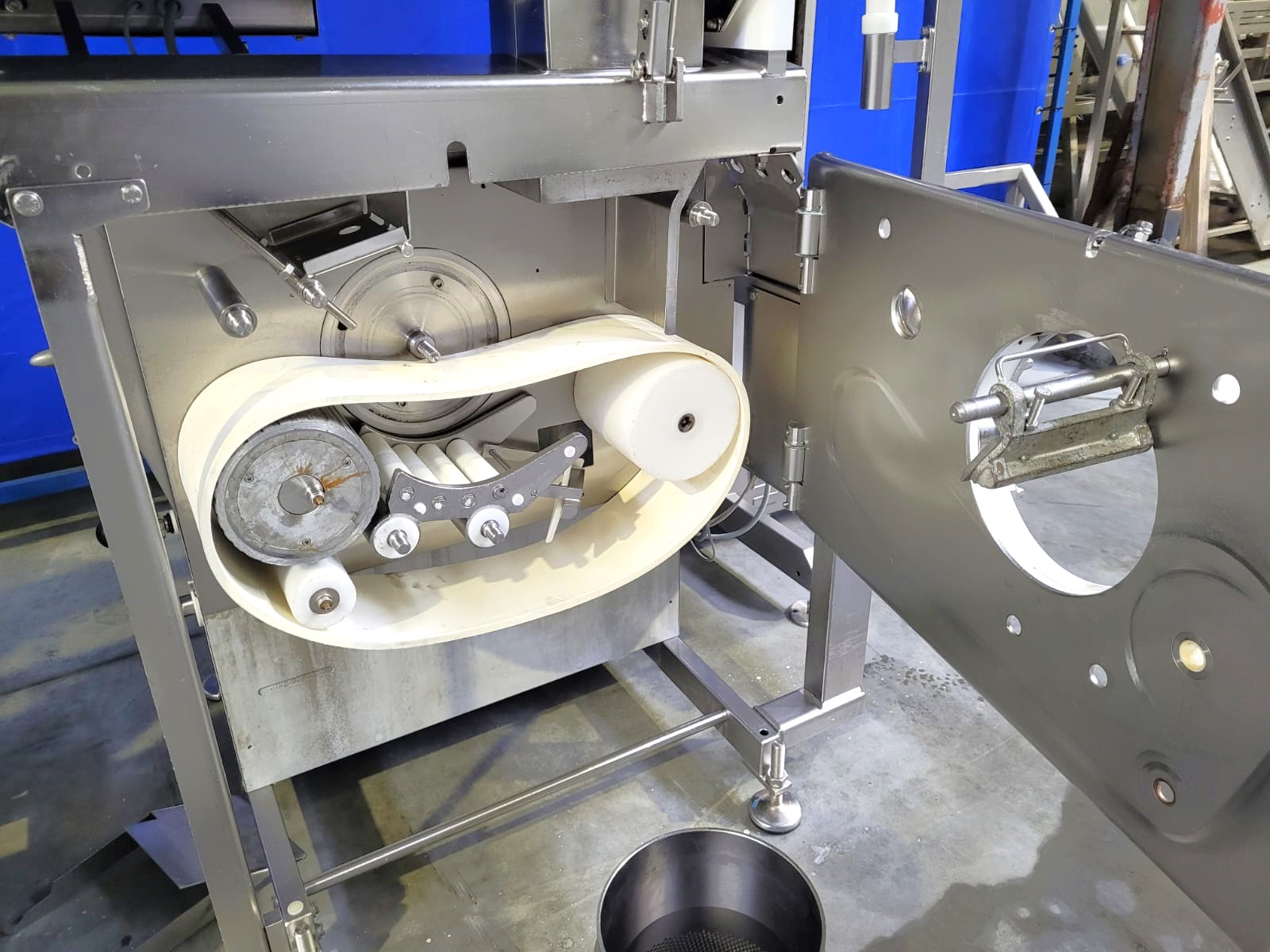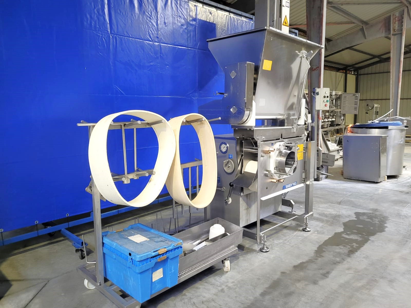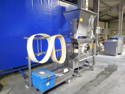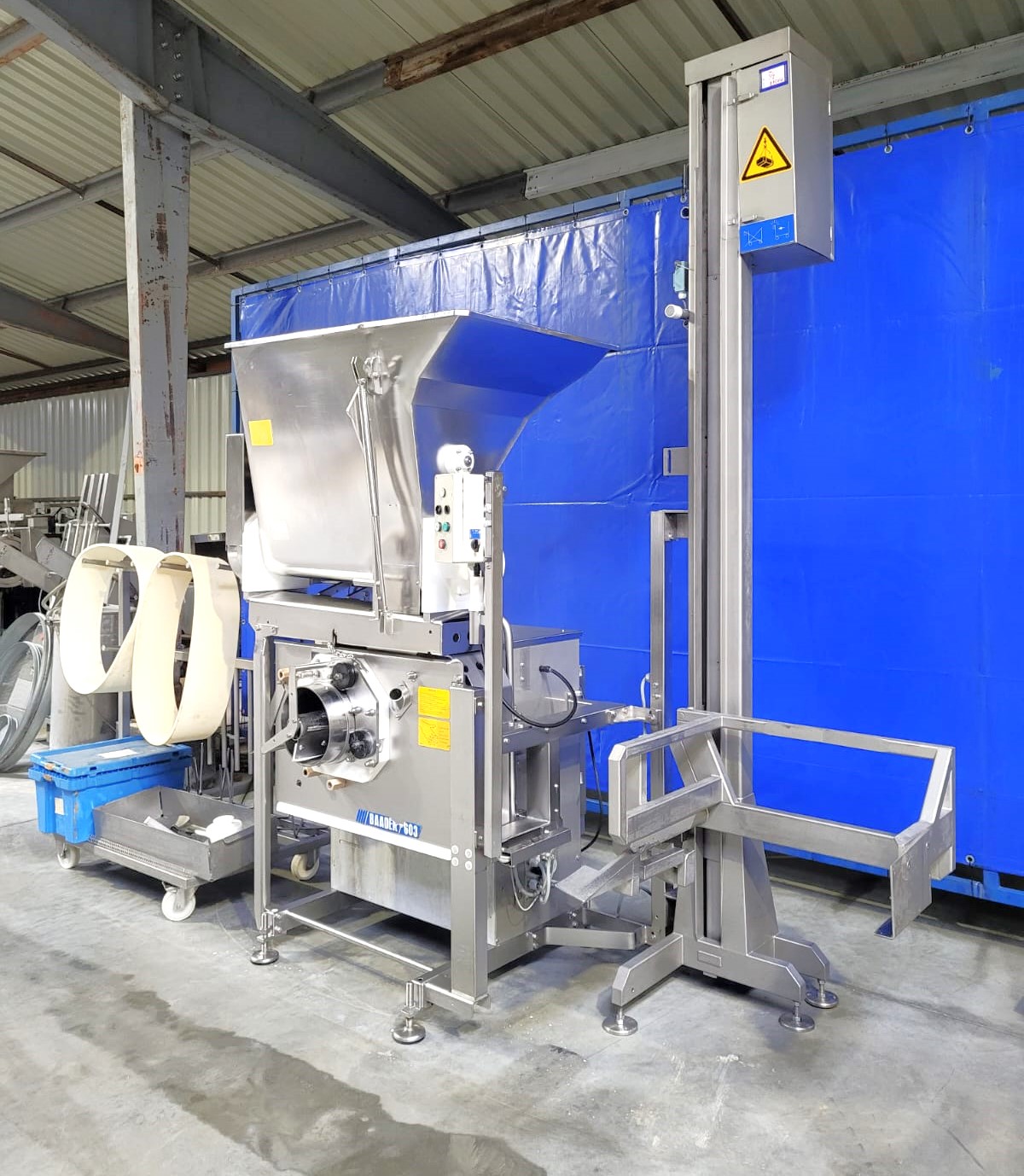 Maszyna wyposażona jest w dwa bębny (obia o średnicy otworów 5 mm) oraz załadunek do pojemników na mięso o pojemności 200l, co zwiększa jej wydajność i przydatność do oddzielania miękkich i twardych składników. Dzięki temu jest szczególnie skuteczna w usuwaniu twardych elementów i ekstrakcji resztek z czerwonego mięsa, drobiu i ryb.