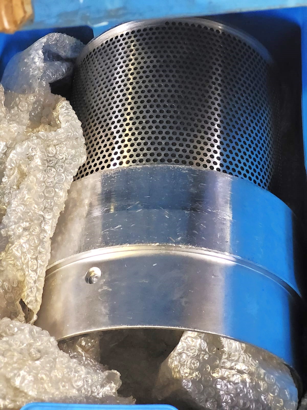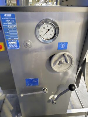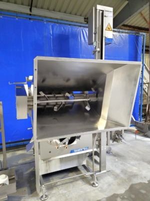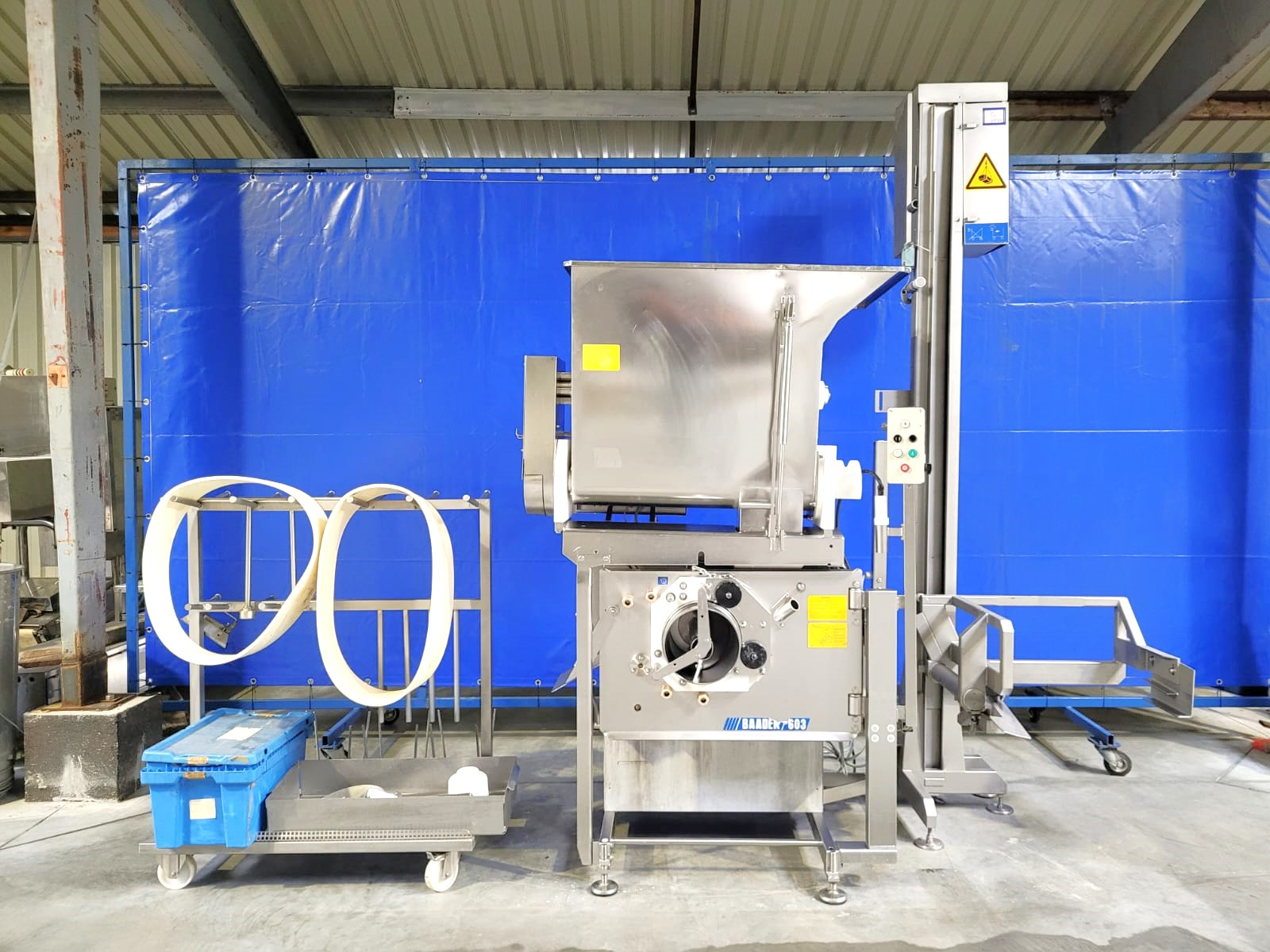 Maszyna wyposażona jest w dwa bębny (obia o średnicy otworów 5 mm) oraz załadunek do pojemników na mięso o pojemności 200l, co zwiększa jej wydajność i przydatność do oddzielania miękkich i twardych składników. Dzięki temu jest szczególnie skuteczna w usuwaniu twardych elementów i ekstrakcji resztek z czerwonego mięsa, drobiu i ryb.