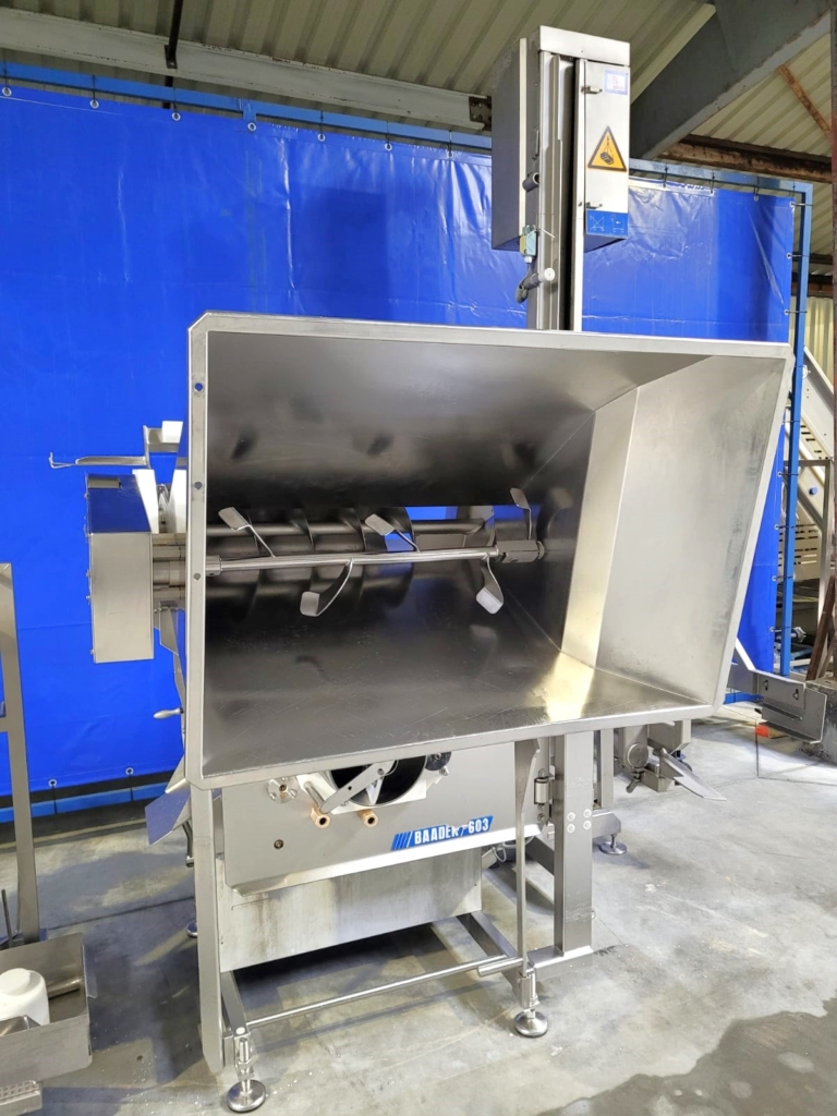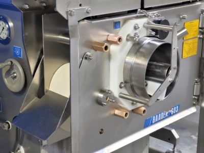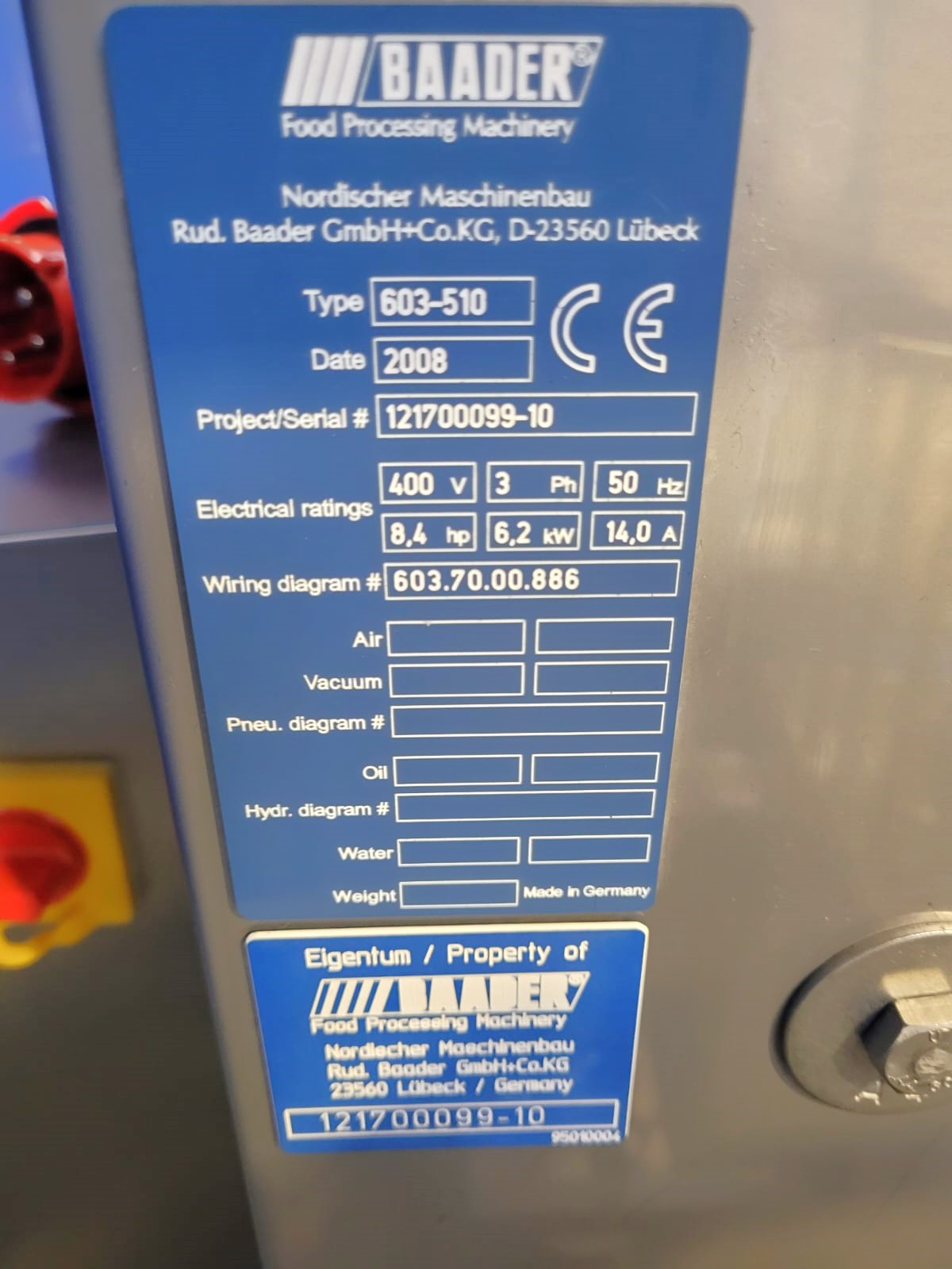 Baader 603-510 to separator miękki wyposażony w elastyczny pas ściskający, który transportuje produkt do perforowanego bębna gdzie jest przeciskany, co pozwala na oddzielenie miękkich składników od twardszych cząstek, takich jak kości, chrząstki i skóra, które pozostają na zewnątrz bębna.