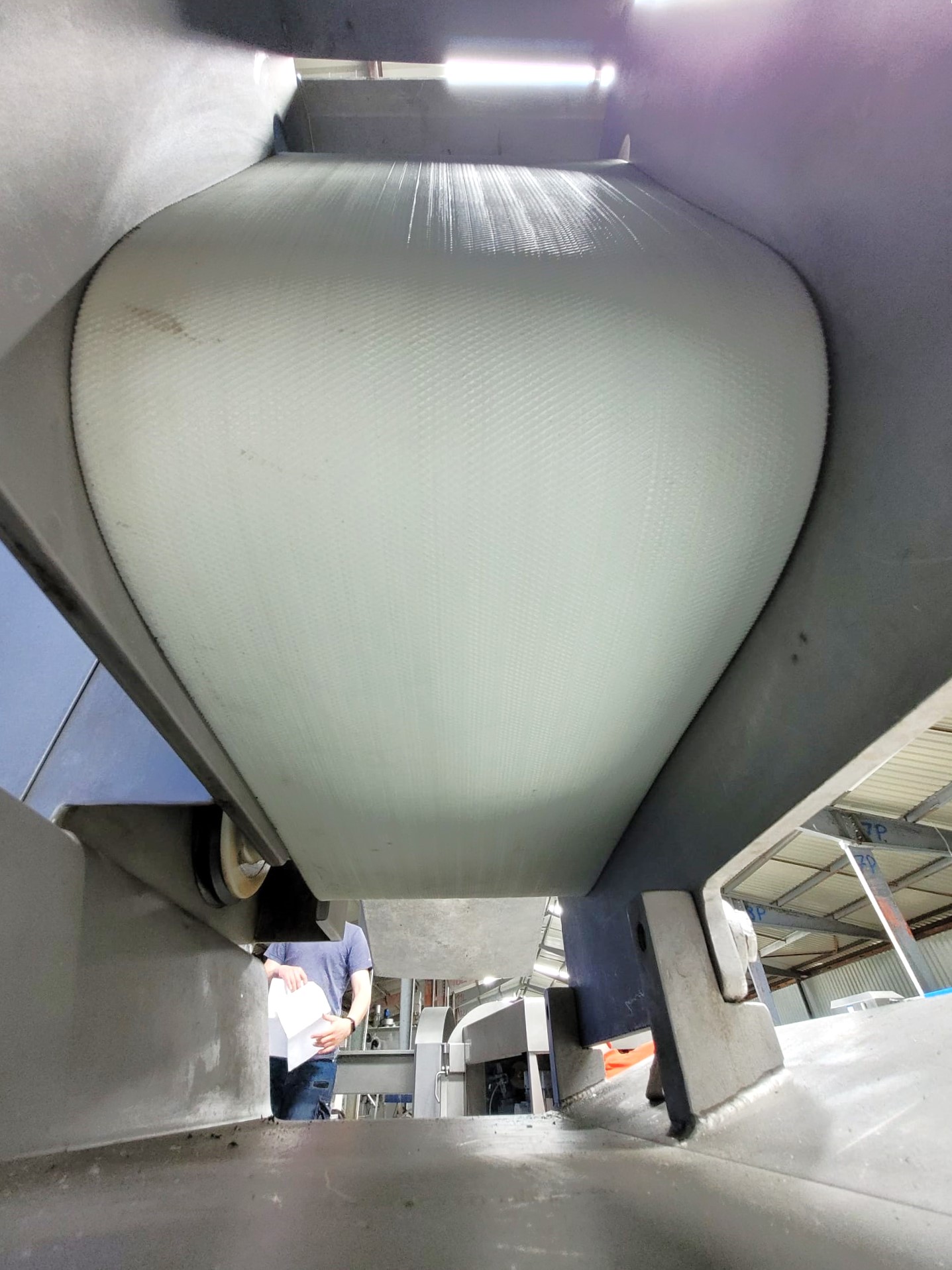 Działanie separatora polega na transportowaniu nieprzetworzonego mięsa do perforowanego bębna za pomocą elastycznej i odpornej na zużycie taśmy poliuretanowej. Rosnące ciśnienie wypycha miękkie mięso przez perforacje bębna, zatrzymując jednocześnie twardsze części, takie jak ścięgna i chrząstki, które są usuwane przez skrobaki.
