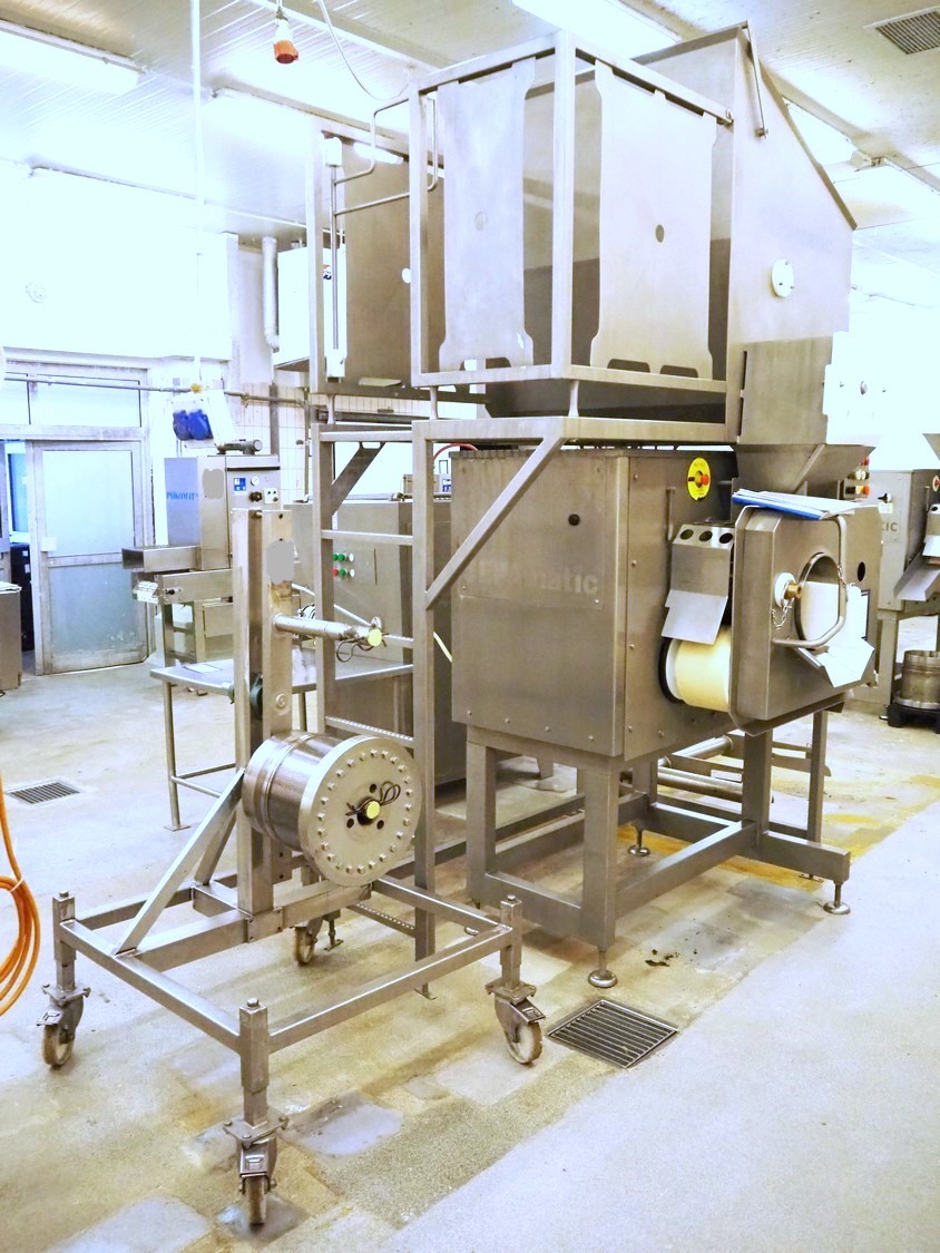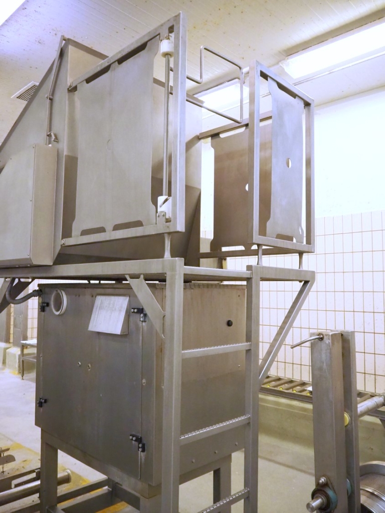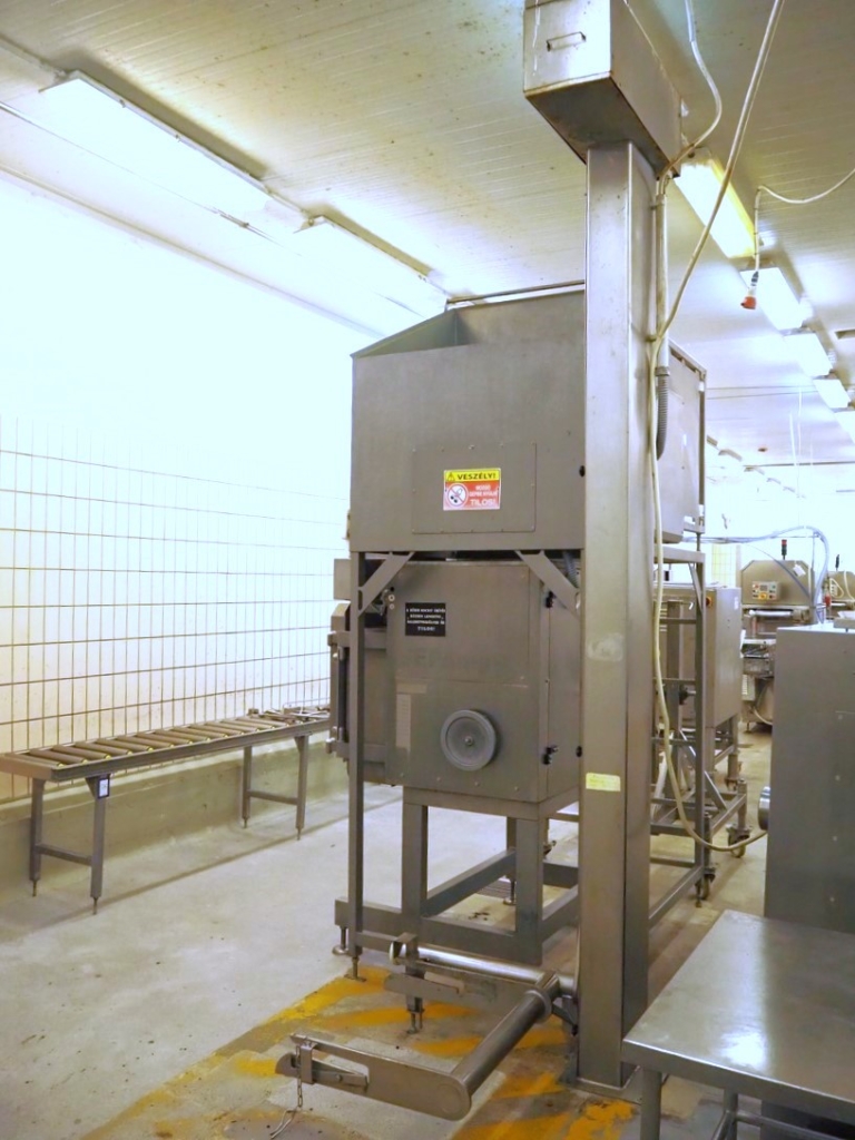 Urządzenie wyposażone w czujnik podawania produktu, załadunek do cymbrów 200l oraz zasobnik wejściowy (bunkier)
