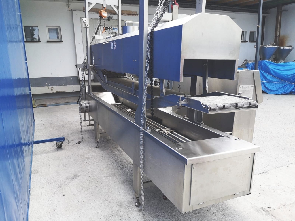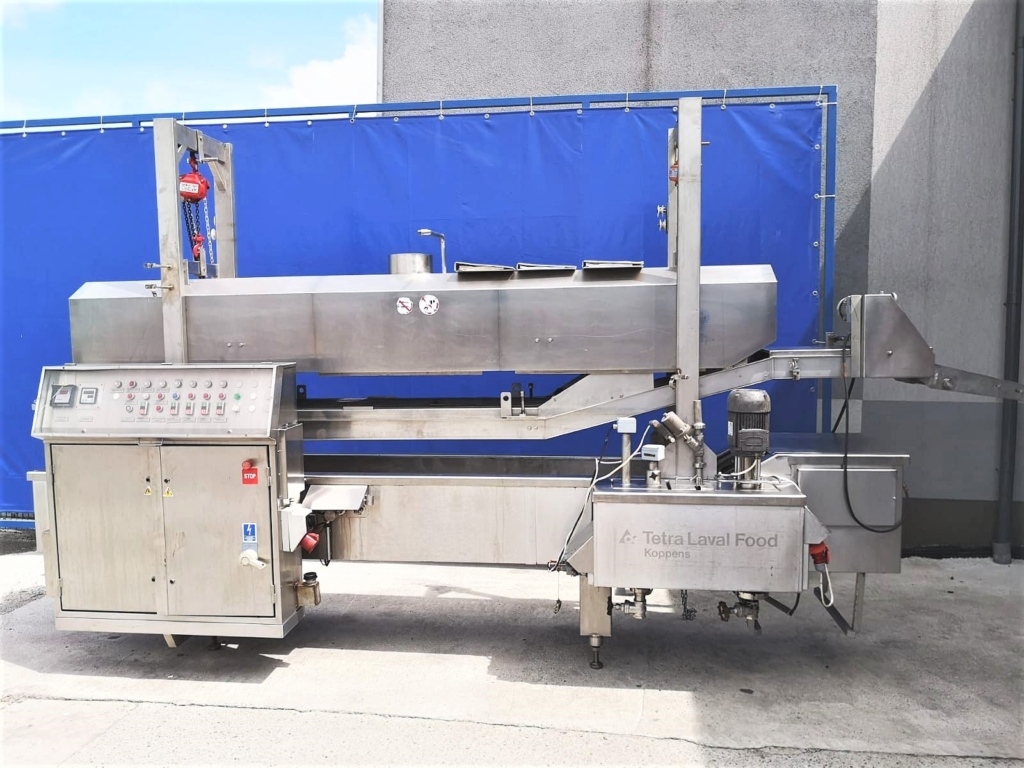 Używany smażalnik przelotowy Koppens. odpowiedni do wszelkich produktów spożywczych, które wymagają smażenia; na przykład: bryłki kurczaka, paluszki rybne, hamburgery itp. Wersja z elektrycznym grzaniem.