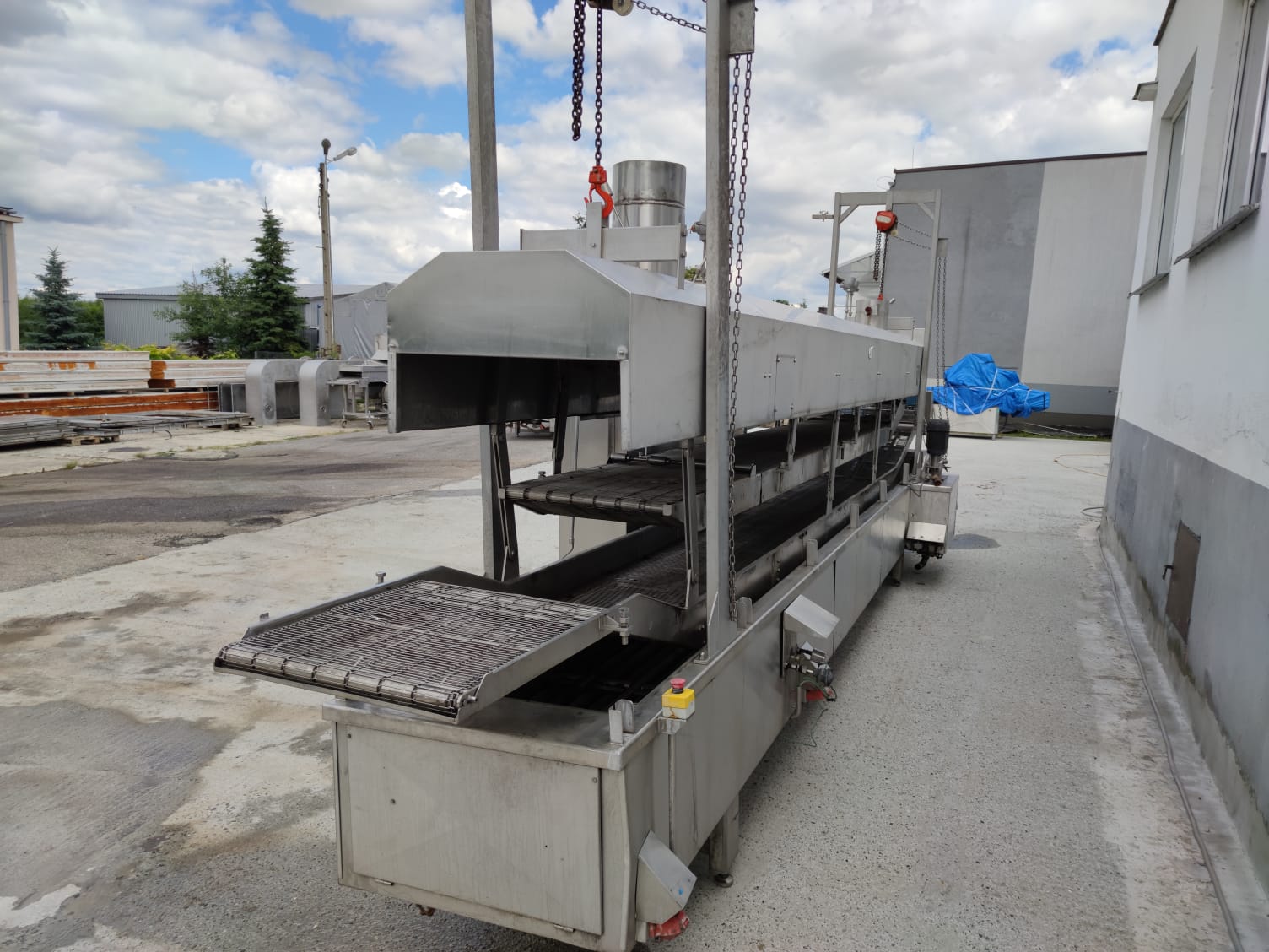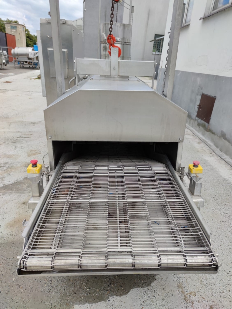 Używany smażalnik przelotowy Koppens. odpowiedni do wszelkich produktów spożywczych, które wymagają smażenia; na przykład: bryłki kurczaka, paluszki rybne, hamburgery itp. Wersja z elektrycznym grzaniem.