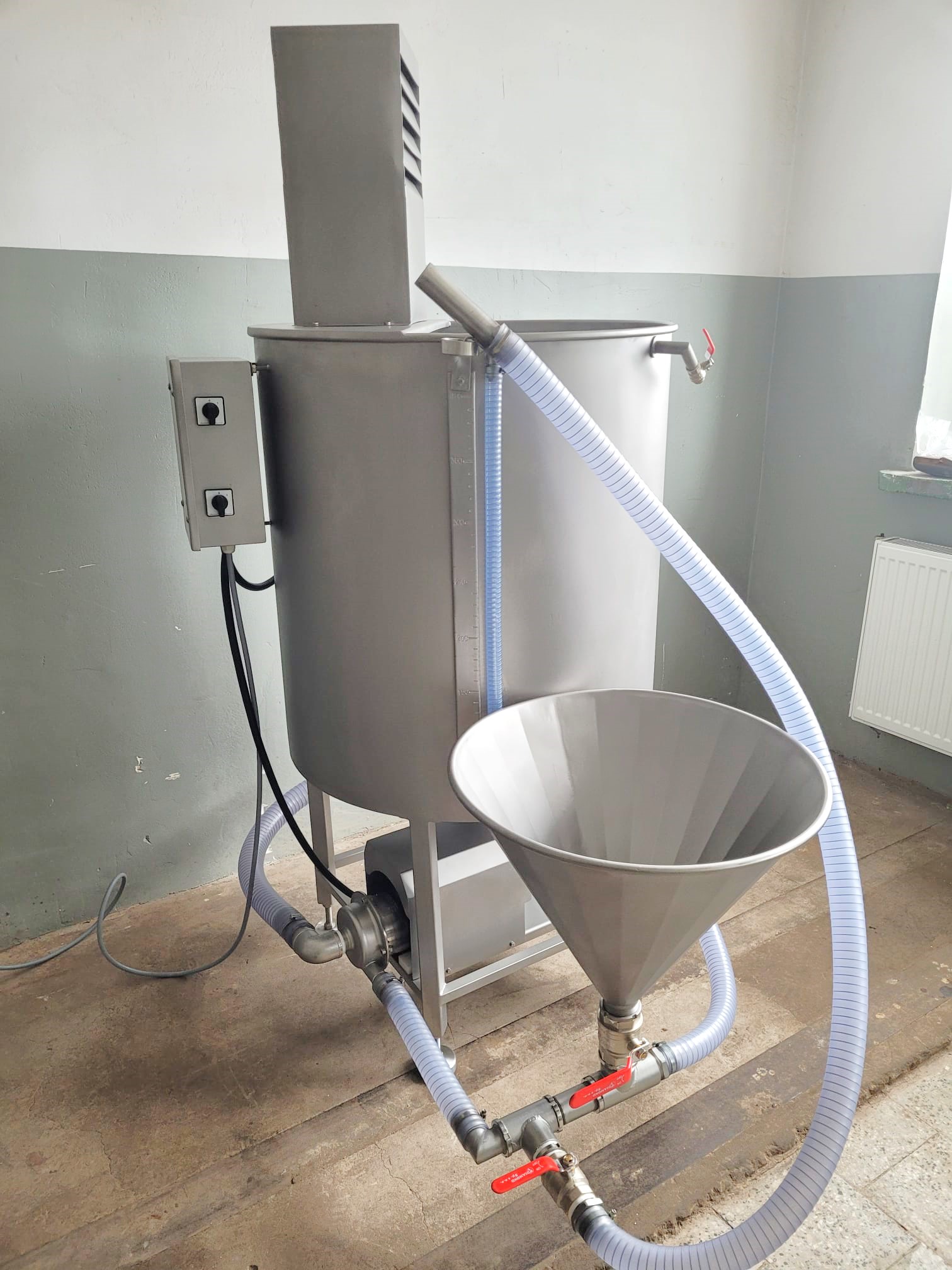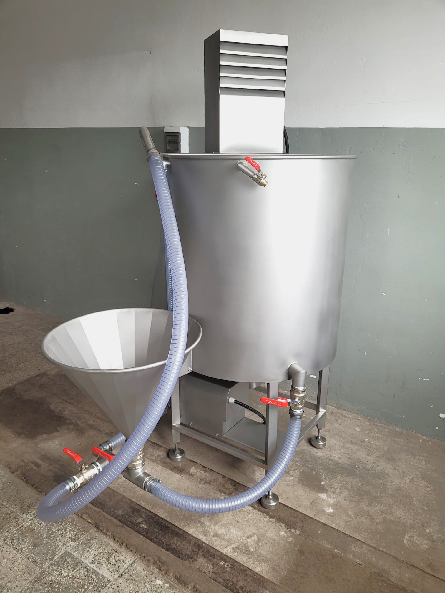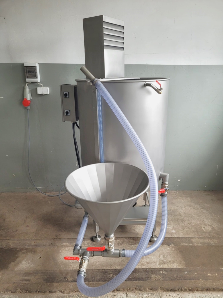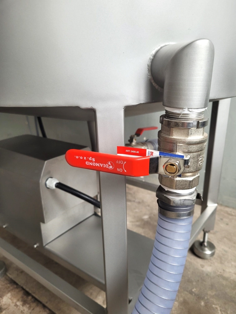 Używana stacja przygotowania solanki Metalbud Nowicki 400l przeznaczona jest do przygotowania i przechowywania roztworu solanki do nastrzykiwania mięśni i elementów mięsnych.