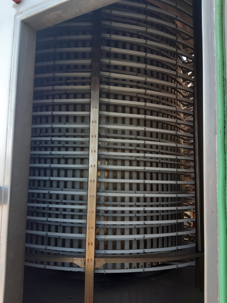 Spiralna konstrukcja maksymalizuje obszar zamrażania, jednocześnie minimalizując wymaganą powierzchnię. Przenośnik taśmowy przesuwa produkty po spiralnej ścieżce, zapewniając spójne i jednolite zamrażanie.